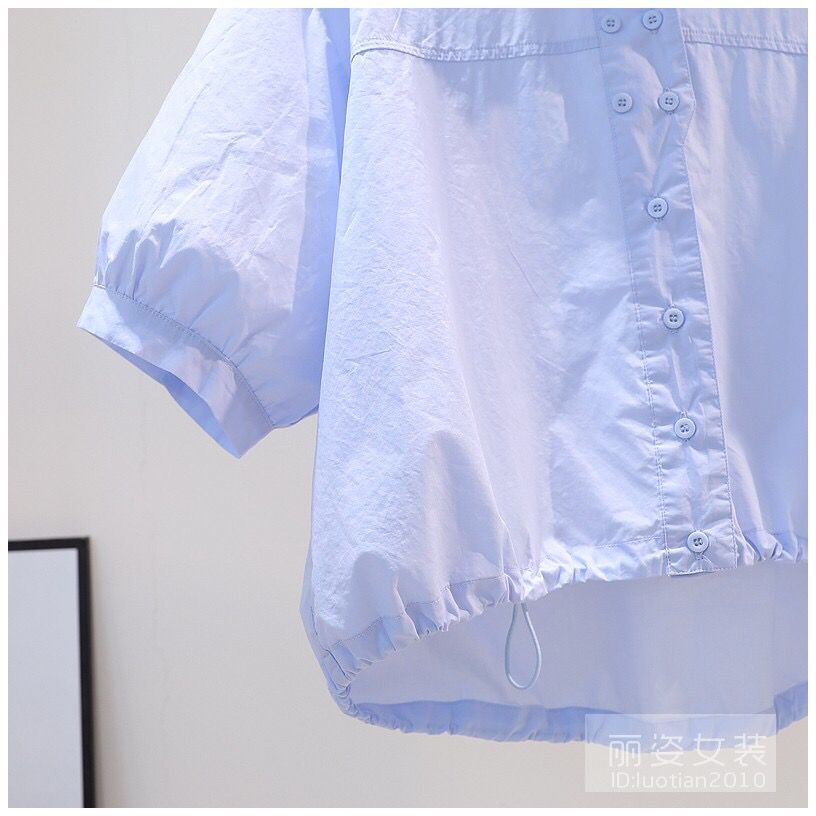 清仓捡漏~专柜撤回大牌外贸纯棉衬衫女短款小个子宽松灯笼袖上衣