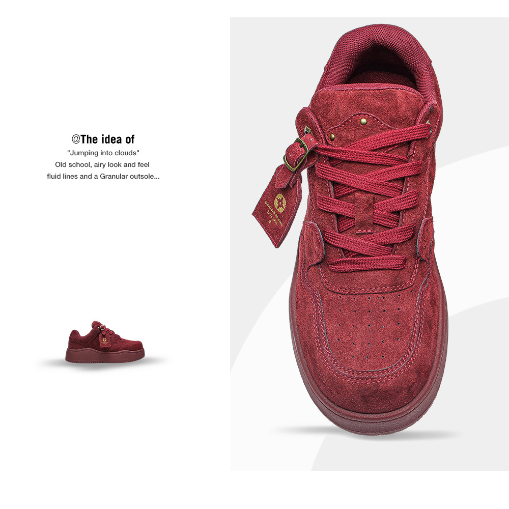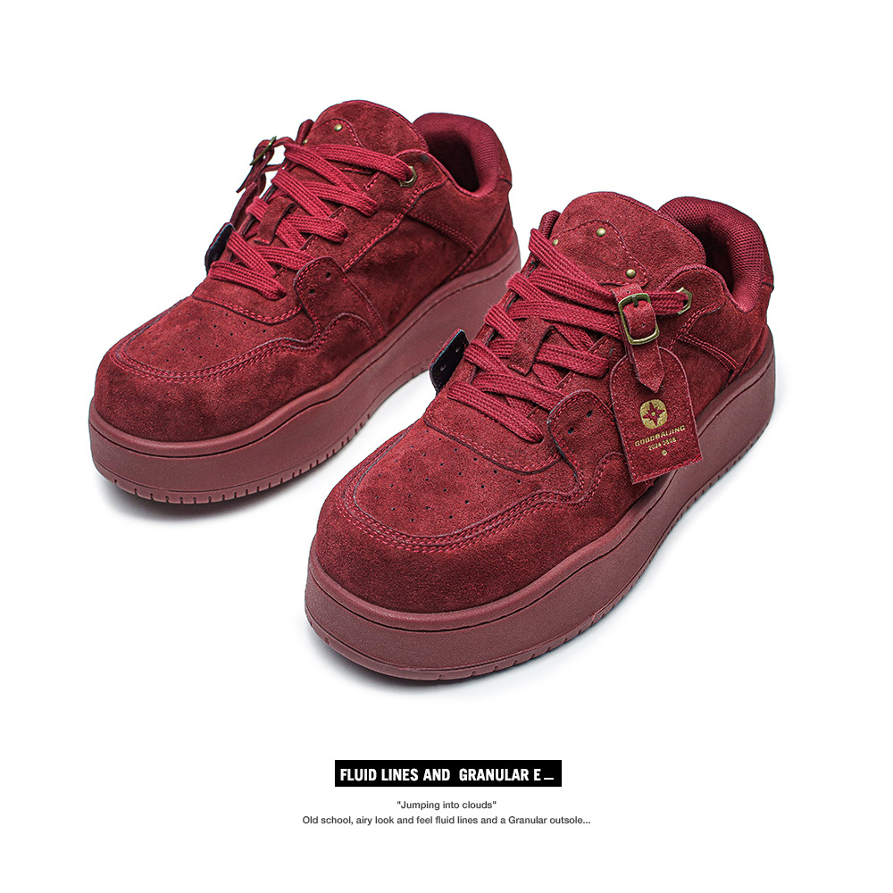 2025新款酒红色厚底休闲系带板鞋女学院风圆头男百搭增高情侣鞋子