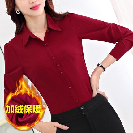 内搭加绒加厚衬衫女长袖2025冬新款韩版修身免烫保暖一体绒女衬衣