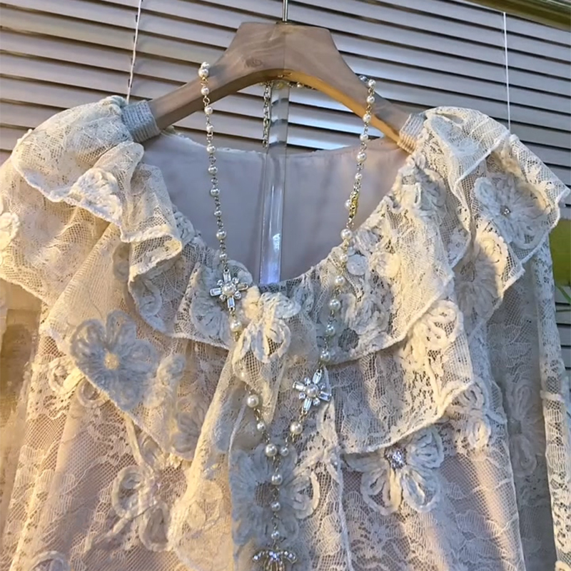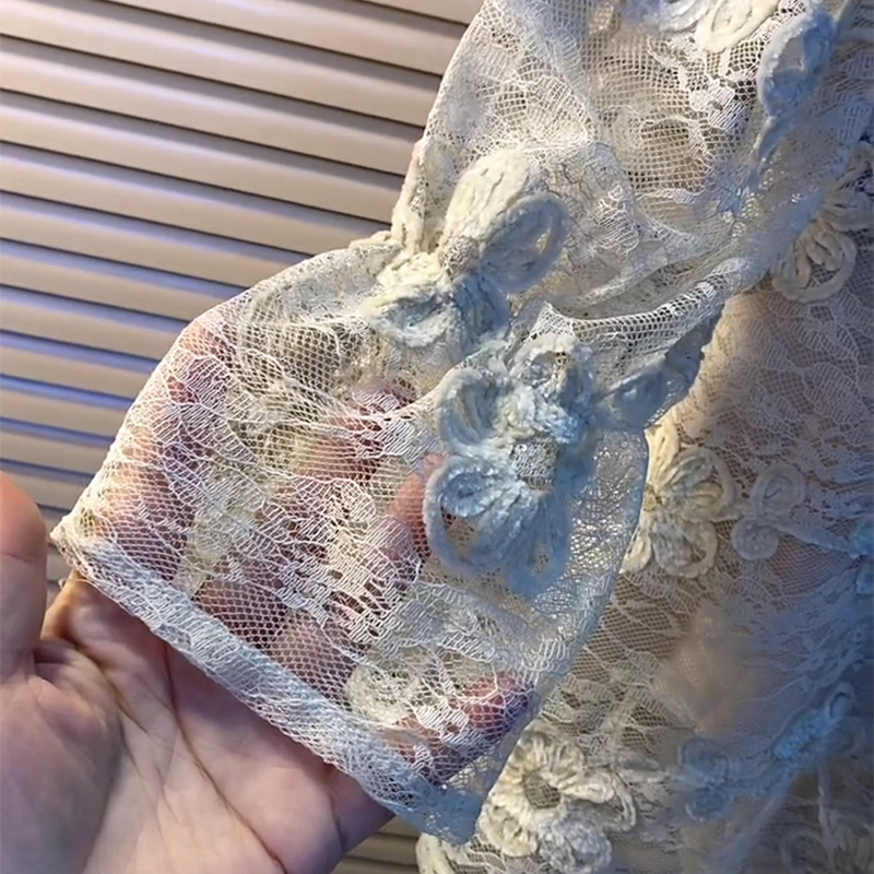 欧货重工加衬遮肉花朵蕾丝大衫
