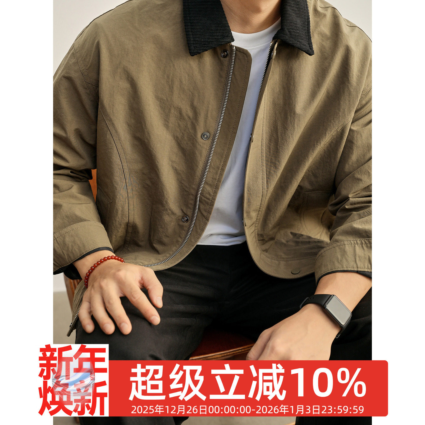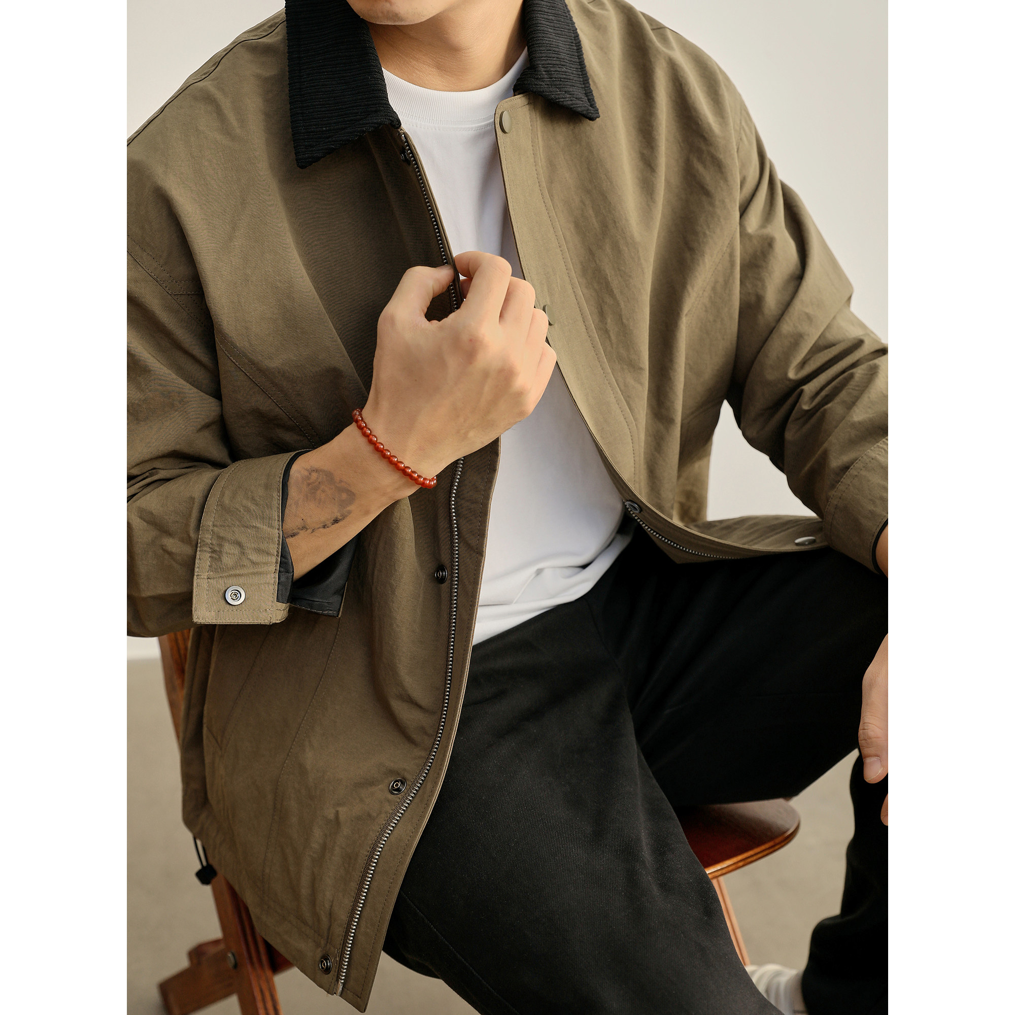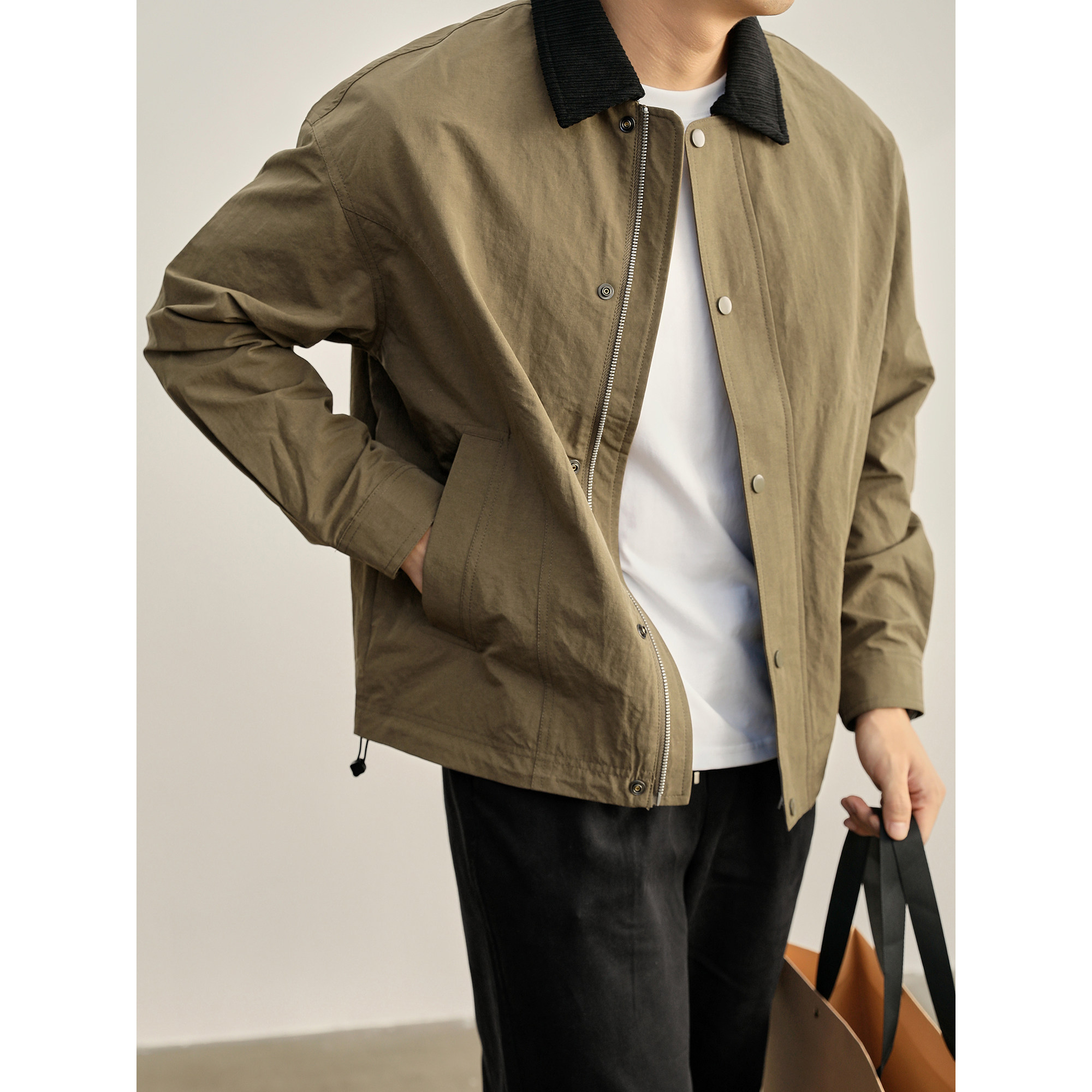 LUUD 底特律下摆抽绳夹克户外防风Boxy短宽款男士撞色翻领外套潮