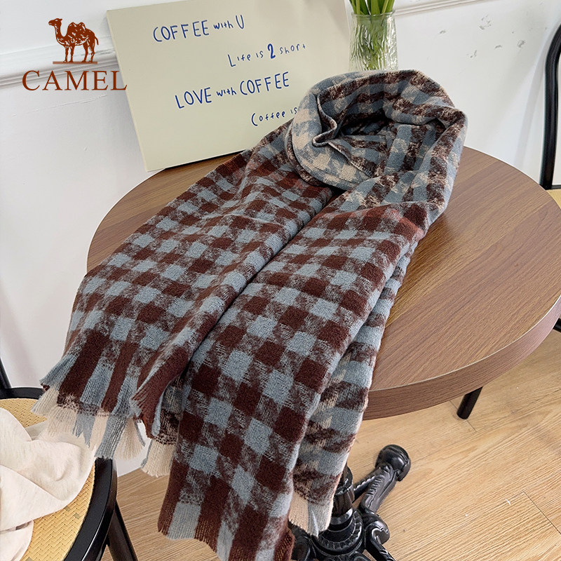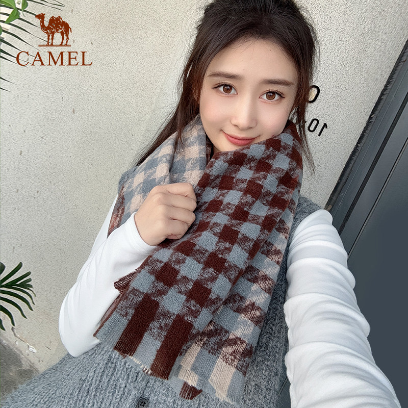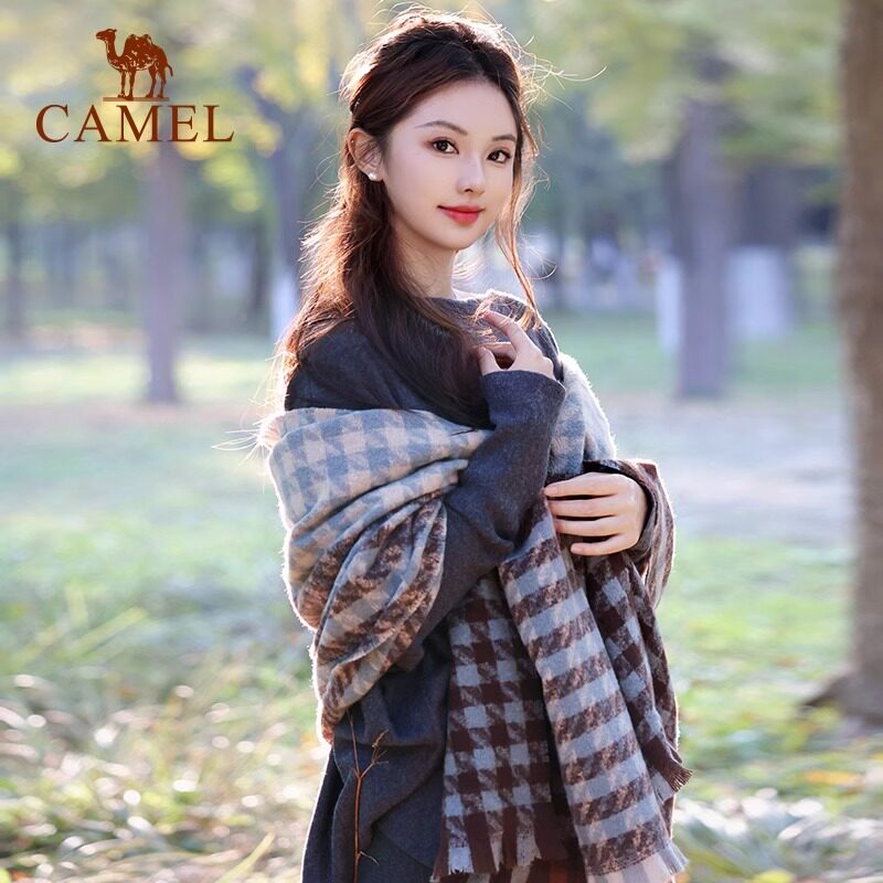 骆驼户外围巾男女2025秋冬保暖围脖韩系百搭披肩千鸟格纹围巾