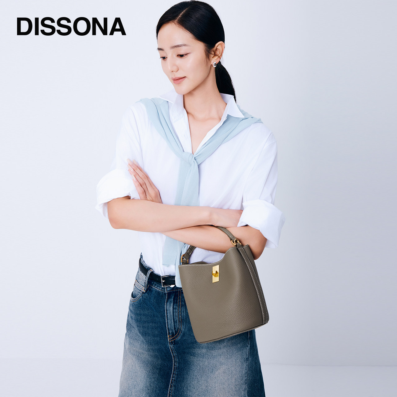 迪桑娜女包焕欣系列水桶包单肩包斜挎包菜篮包z