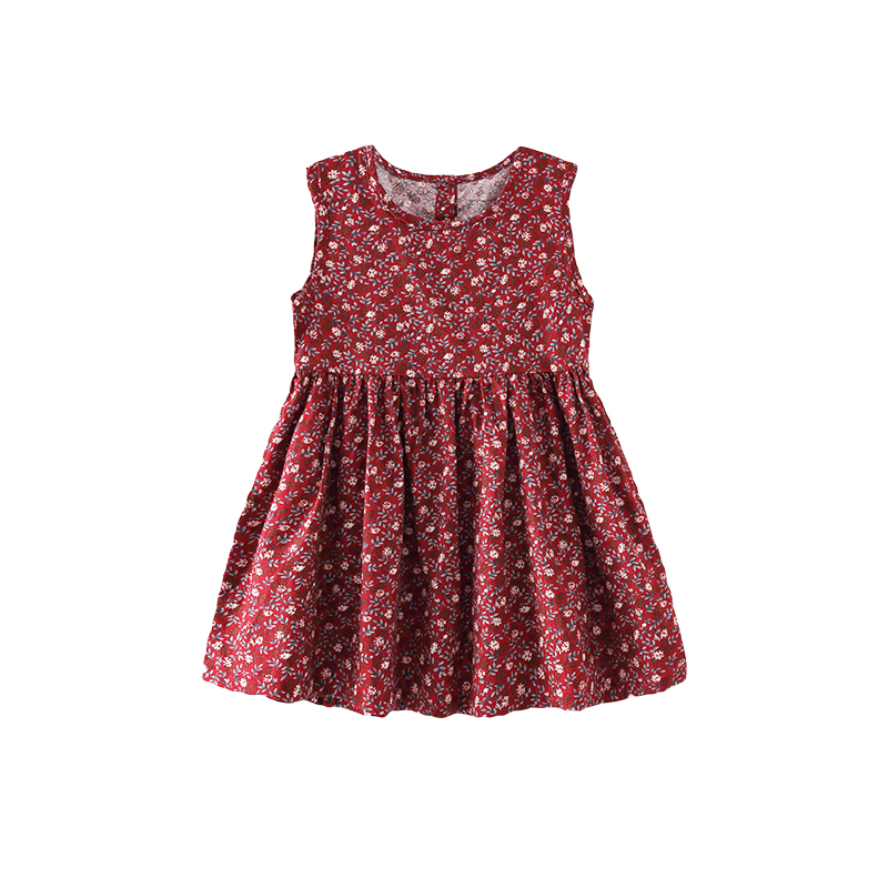 malwee女童碎花连衣裙夏季新款好看小女孩圆领无袖纯棉儿童公主裙