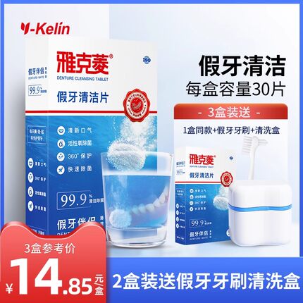 雅克菱假牙清洁片30片老年除菌泡保持器牙套泡腾清洗剂液水泡腾片