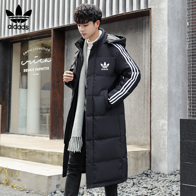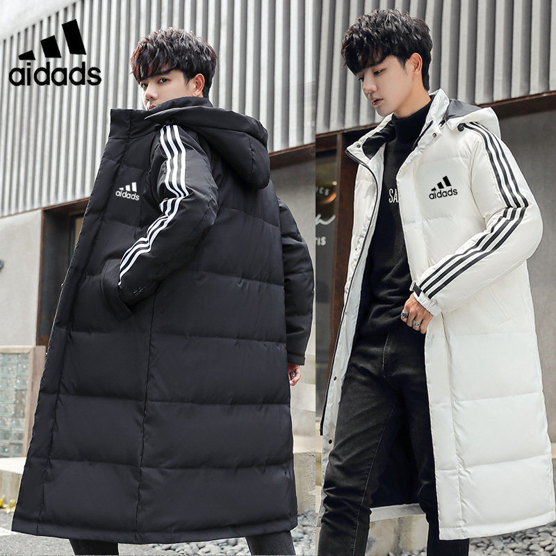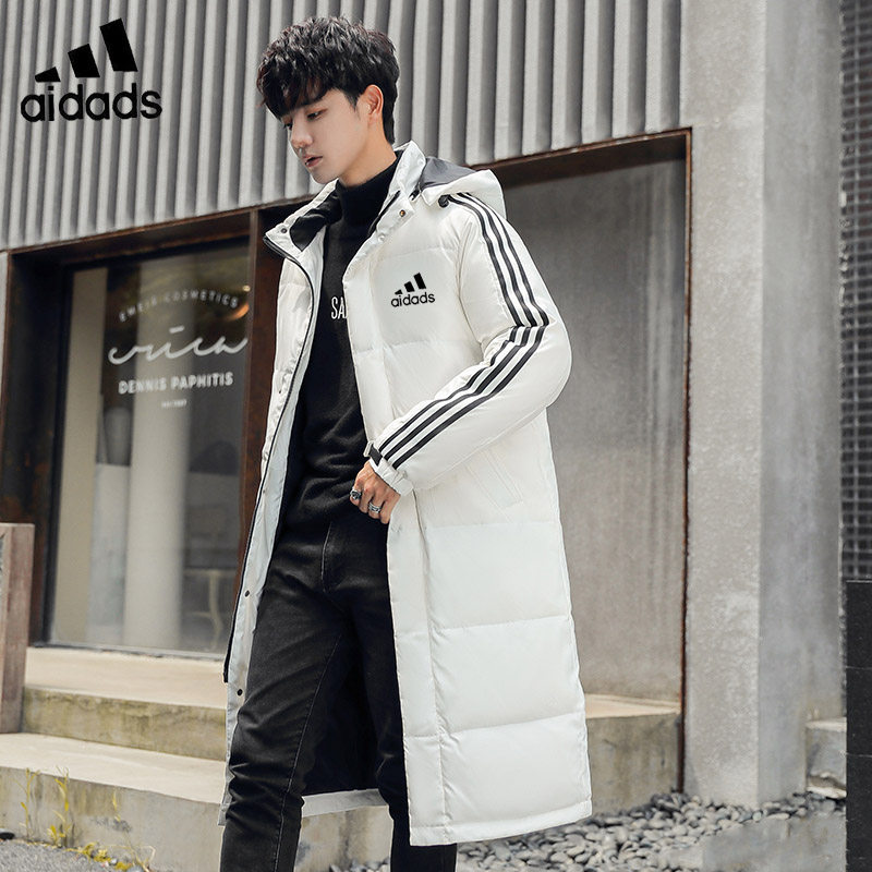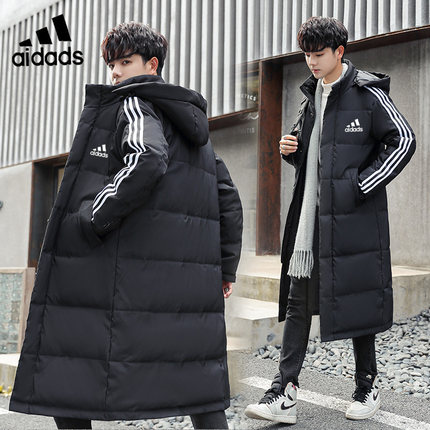 长款羽绒服男女冬季过膝加厚保暖情侣中戏服白鸭绒三条杠品牌外套