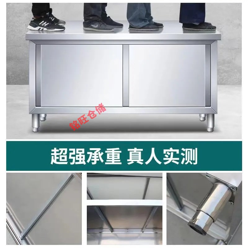 厨房30a4不锈钢工作台整体焊接橱柜收纳带推拉门操作台商用储物柜