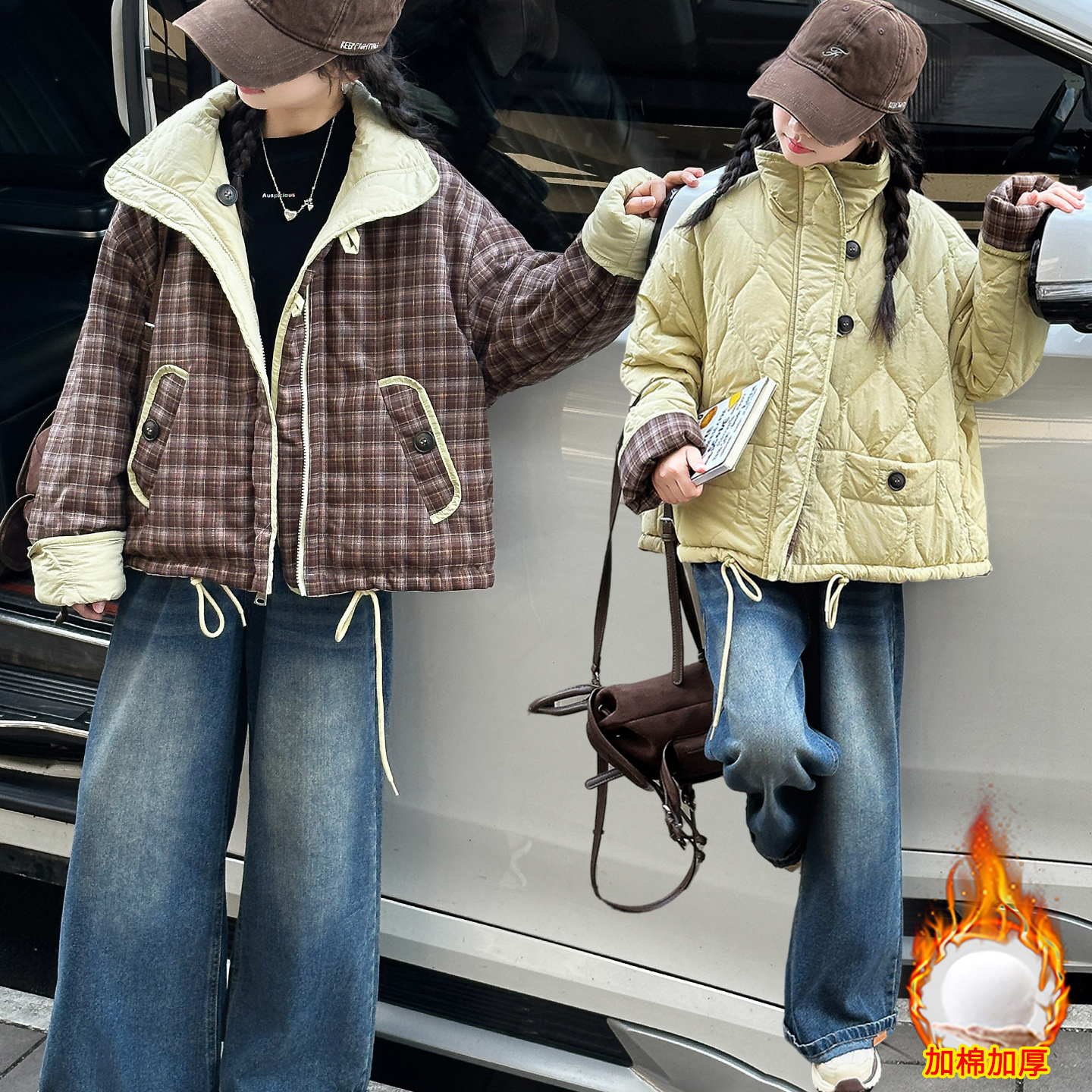 女童棉服外套秋冬款2025新款洋气儿童冬装加厚棉衣大童两面穿棉袄