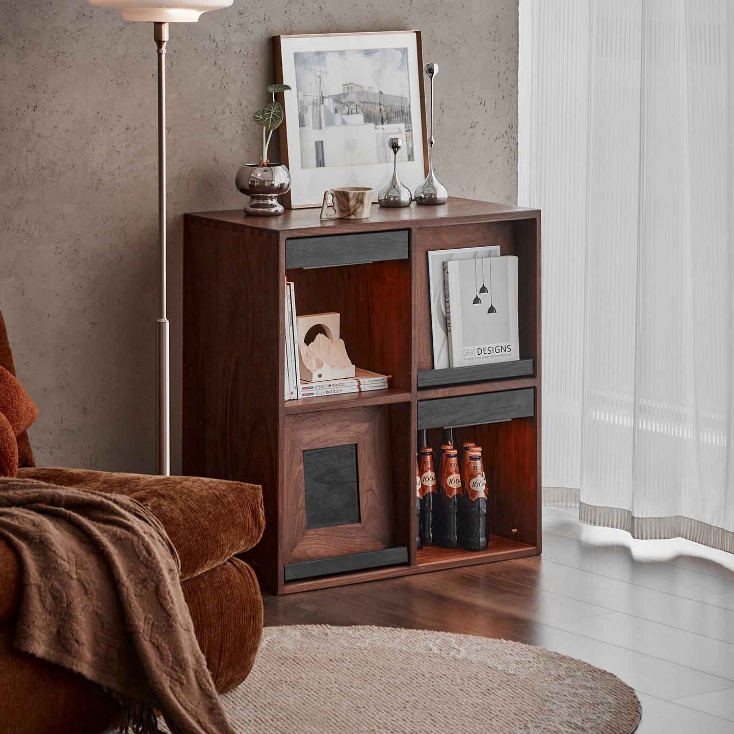 色格黑胡桃木模块组合边柜