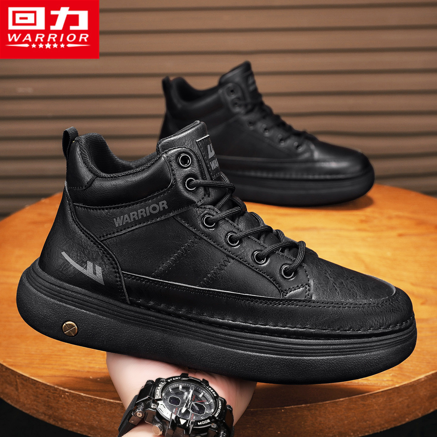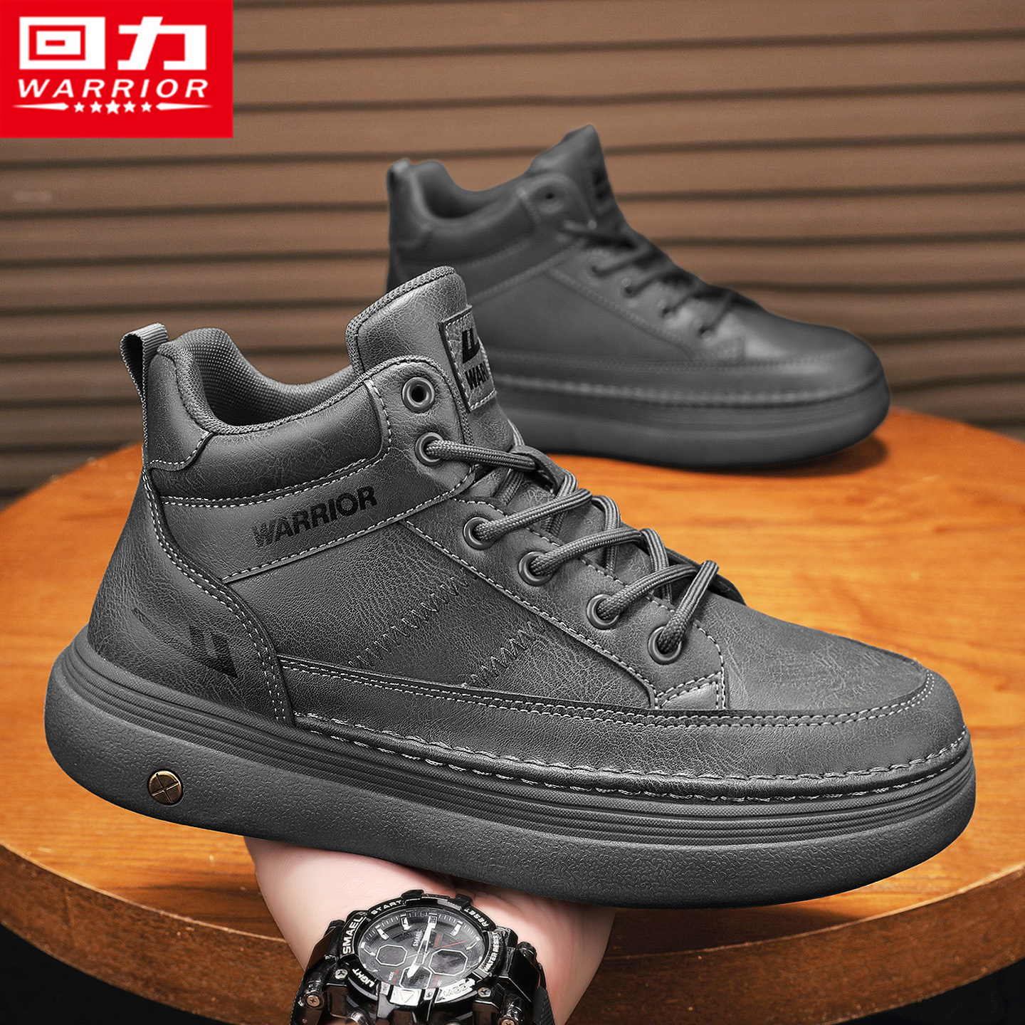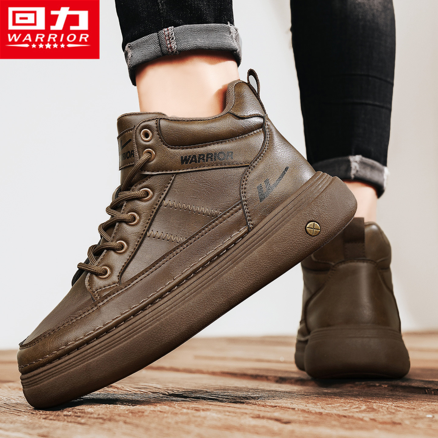 回力高帮男鞋秋季青少年防水棕色皮鞋休闲鞋运动厚底上班工作板鞋