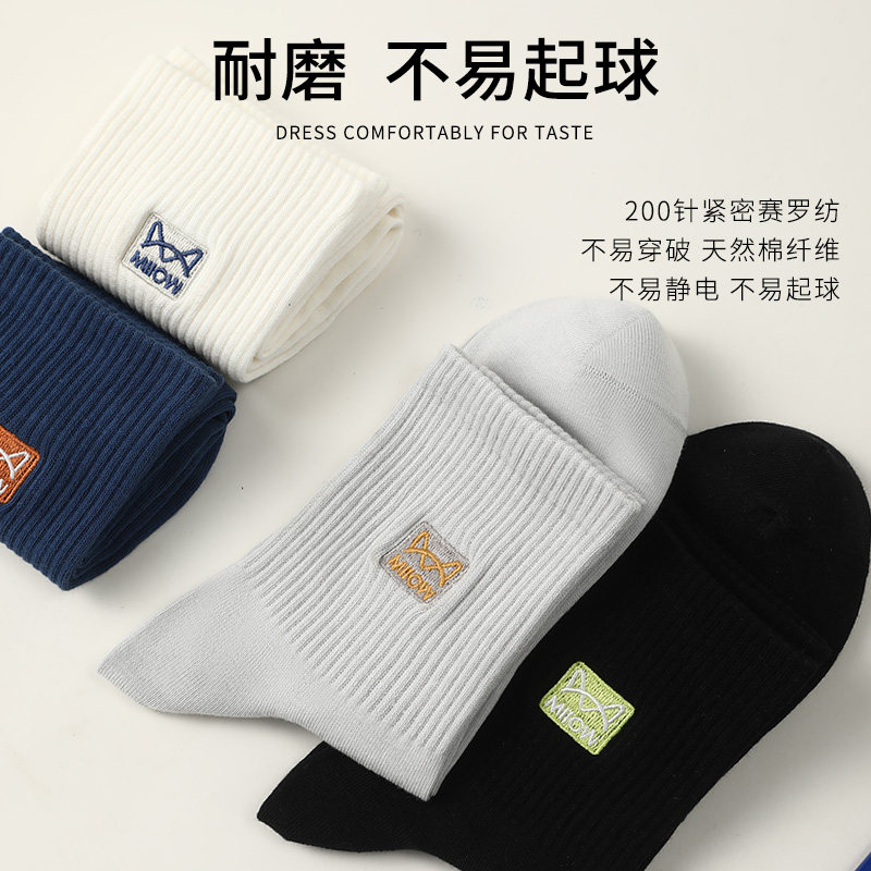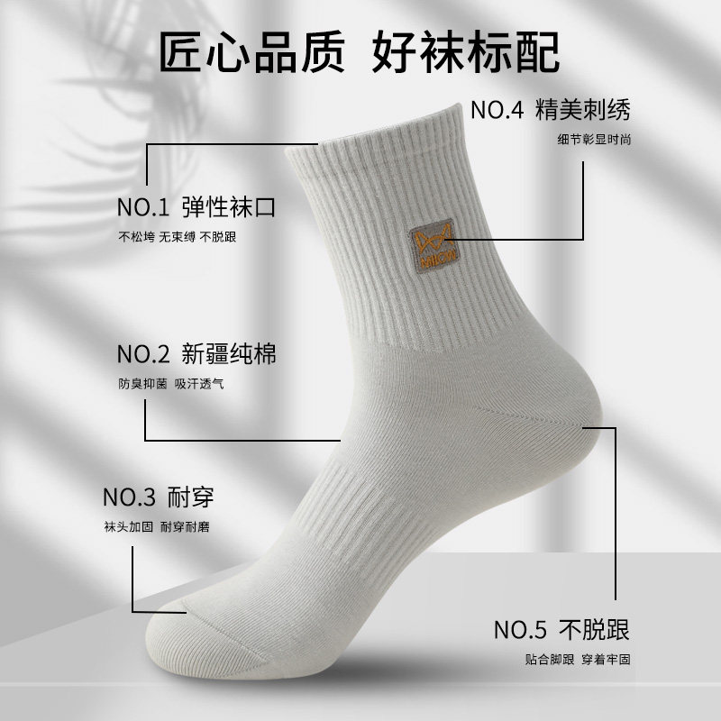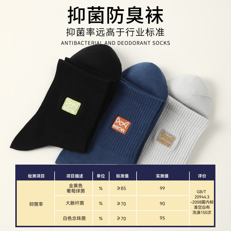 猫人袜子男士100%纯棉秋冬季中筒抗菌防臭吸汗运动全棉男款长袜