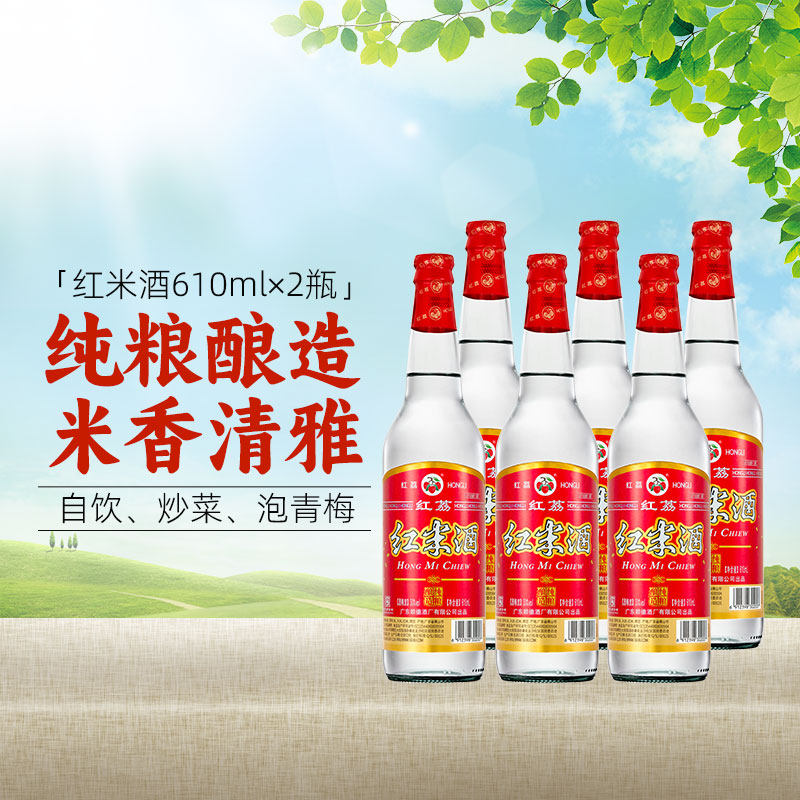 红荔牌低度白酒30度红米酒610ml*6瓶清雅型自酿浸泡青梅果酒炒菜