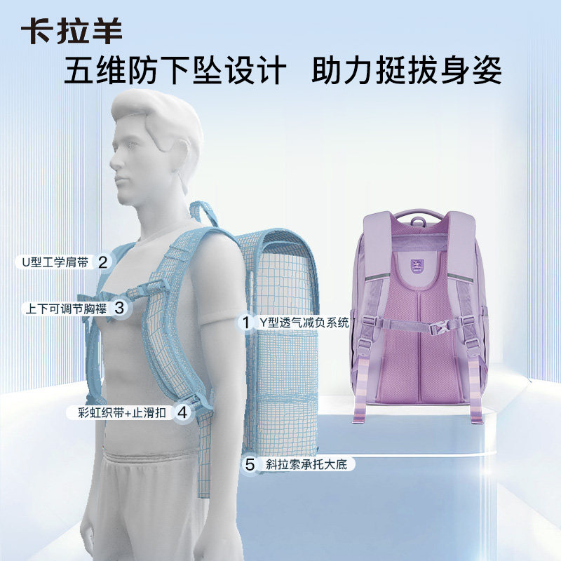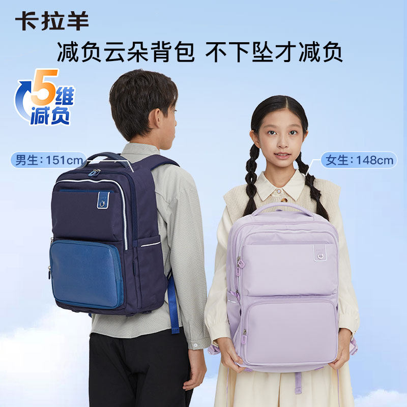 卡拉羊大容量防泼水轻便减负云朵书包5-9年级初高中防下坠双肩包