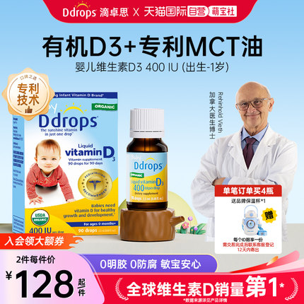 【自营】Ddrops滴卓思婴幼儿D3滴剂维生素d3婴儿vd3宝宝儿童补充