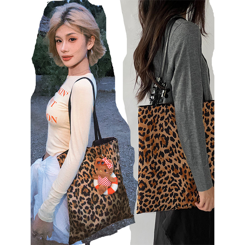 颜色超正的丝光豹纹单肩手提包包