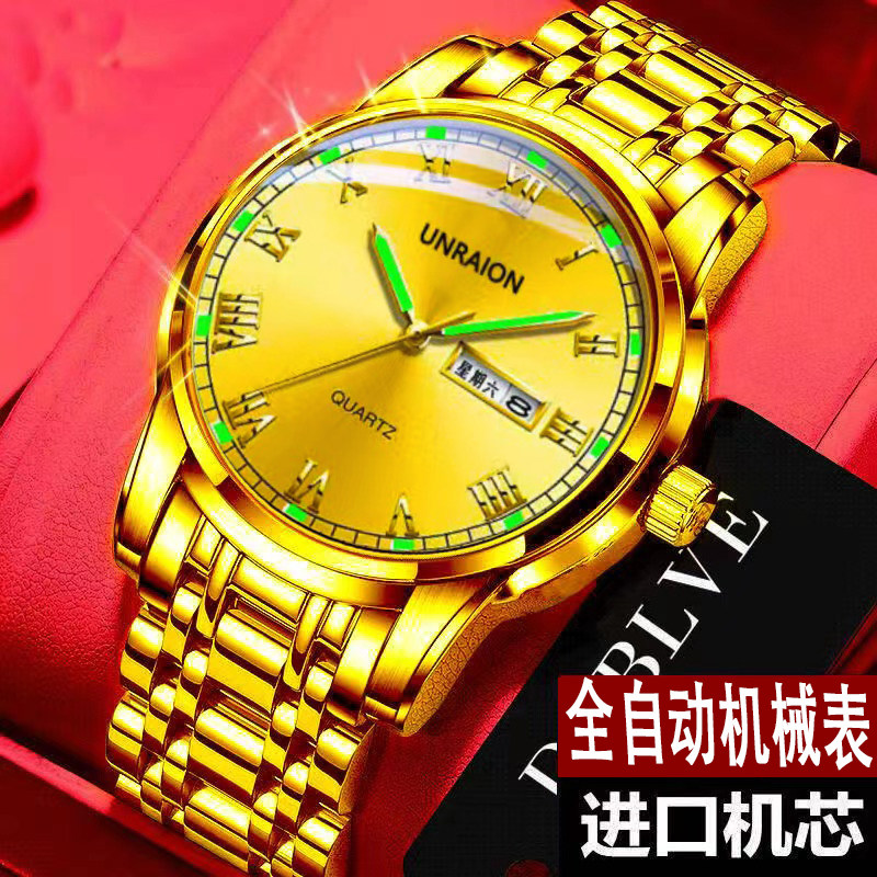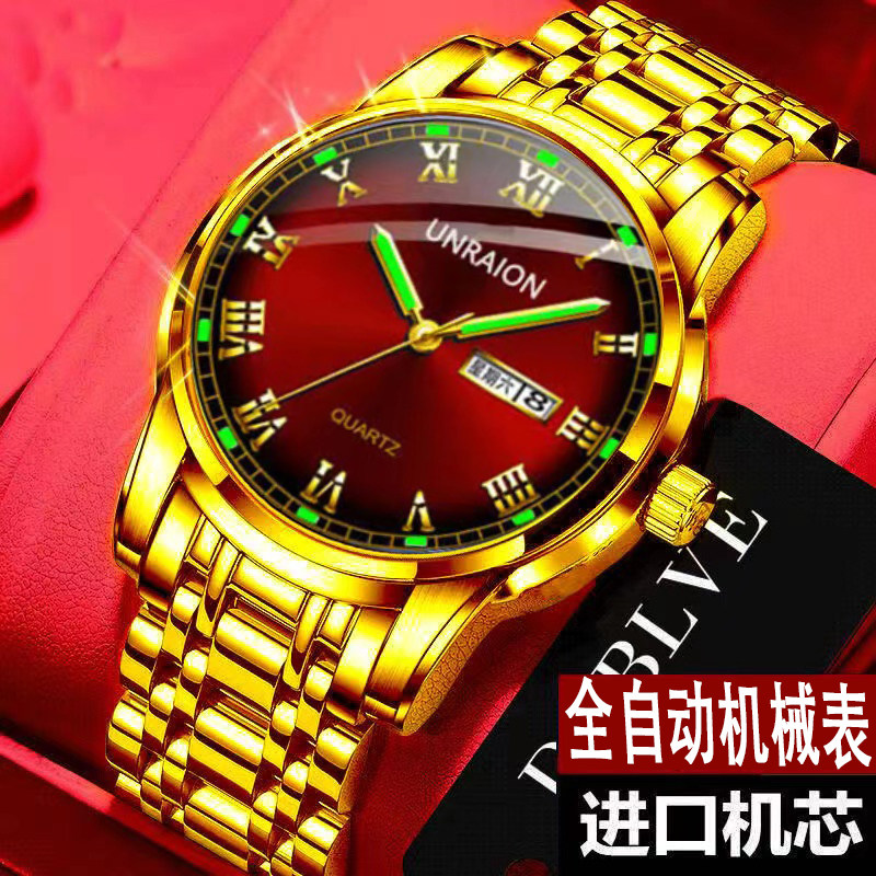 正品瑞士全自动非机械表手表男士防水潮流双日历时尚夜光商务新款