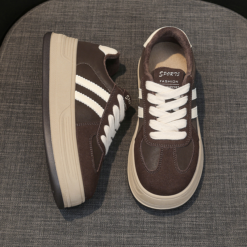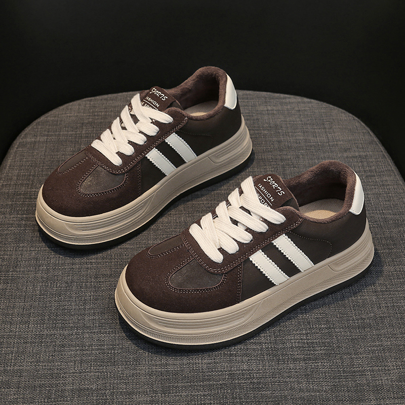 美拉德复古德训鞋女2025冬季新款百搭休闲板鞋加绒保暖厚底二棉鞋