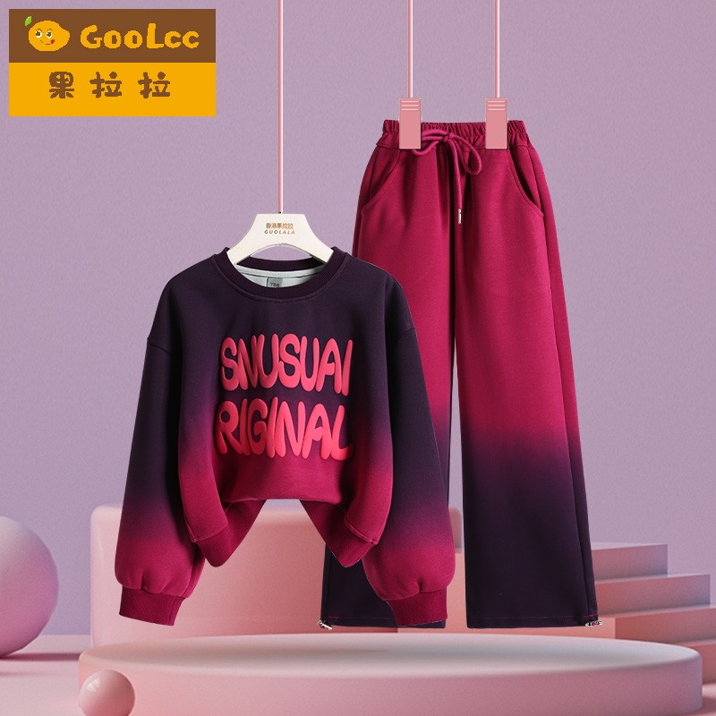 果拉拉春秋冬女童渐变卫衣套装潮