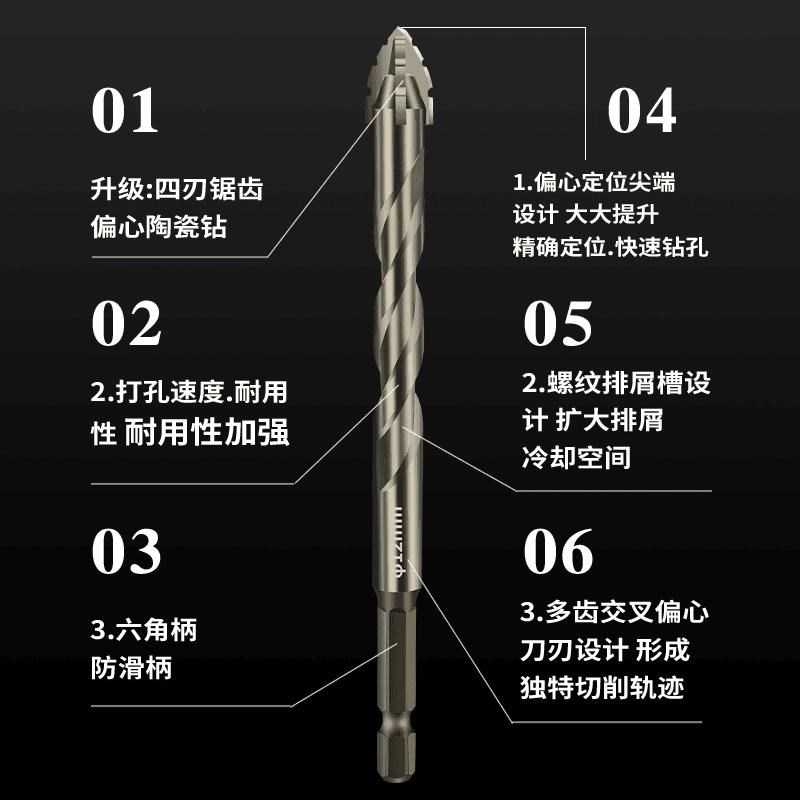 新款四刃锯齿偏心钻头合金超硬干打全瓷砖陶瓷玻璃大理石混凝土
