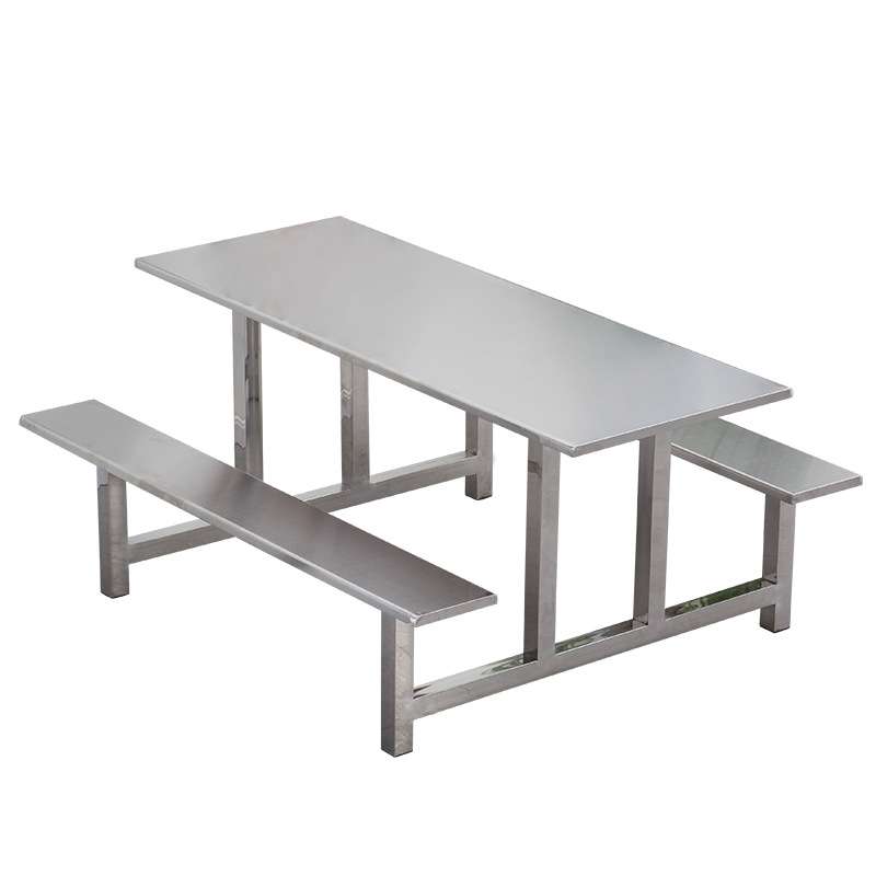 学校不锈钢餐桌食堂餐桌椅员工工人工厂连体挂凳4人6人8人餐桌椅