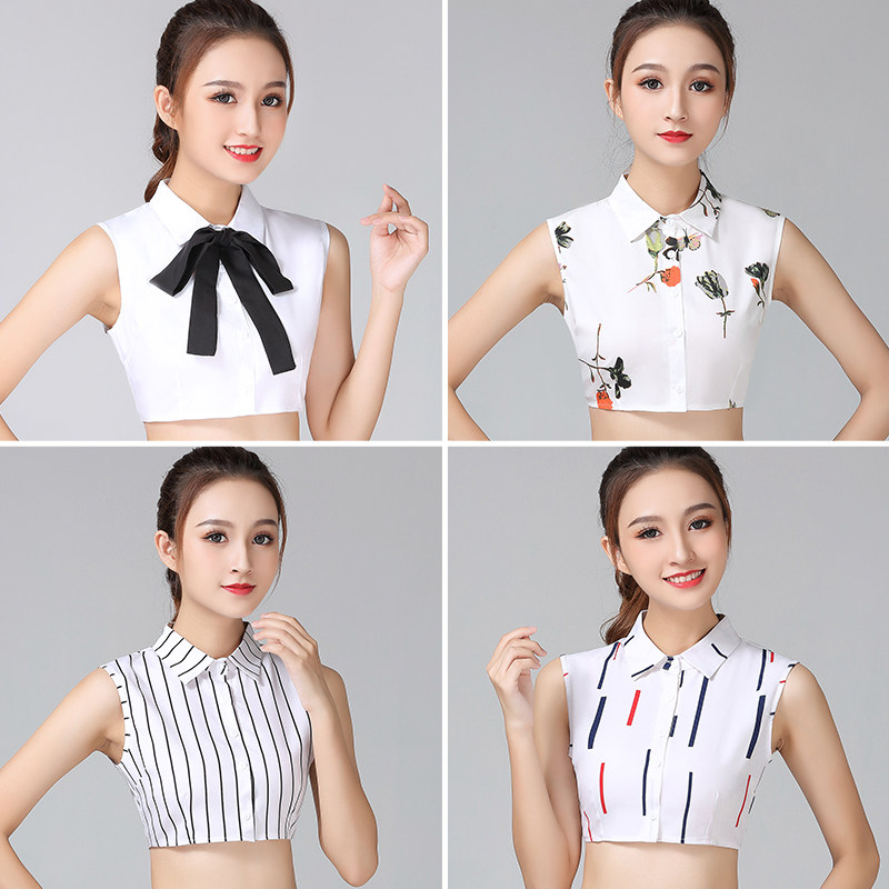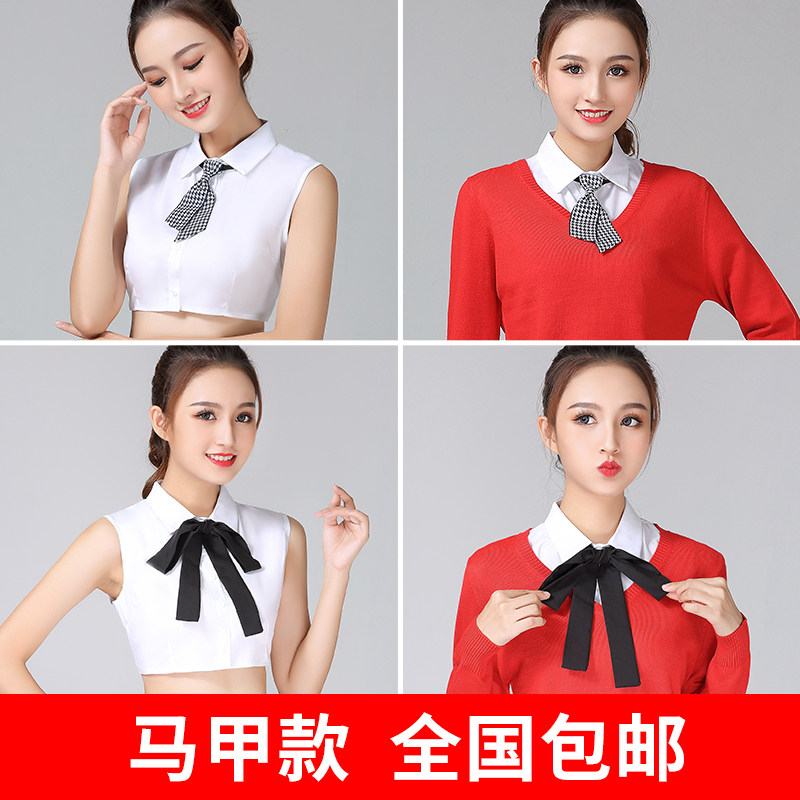 假领子女衬衫系带春夏雪纺打底内搭上衣蝴蝶结白色装饰衬衣领假领
