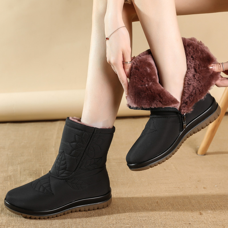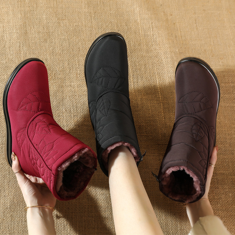 雪地靴女冬季短靴加绒保暖妈妈棉鞋防水防滑中老年大码平底女棉鞋