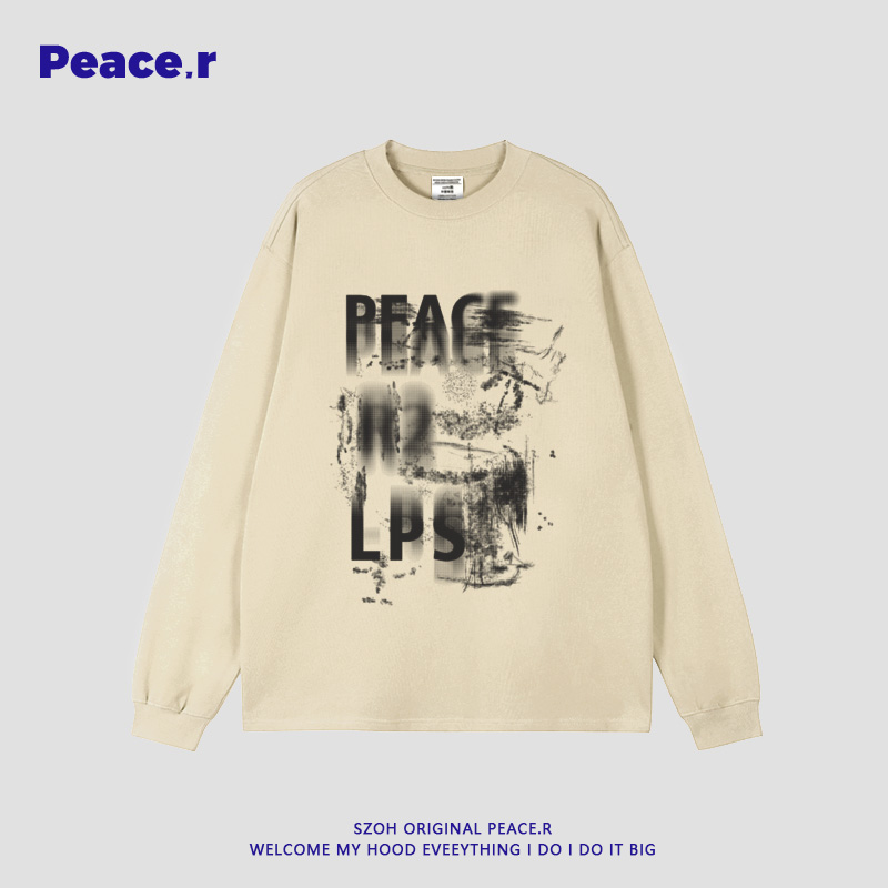 美式休闲重磅虚幻字母印花宽松长袖t恤男秋季潮牌休闲纯棉打底衫