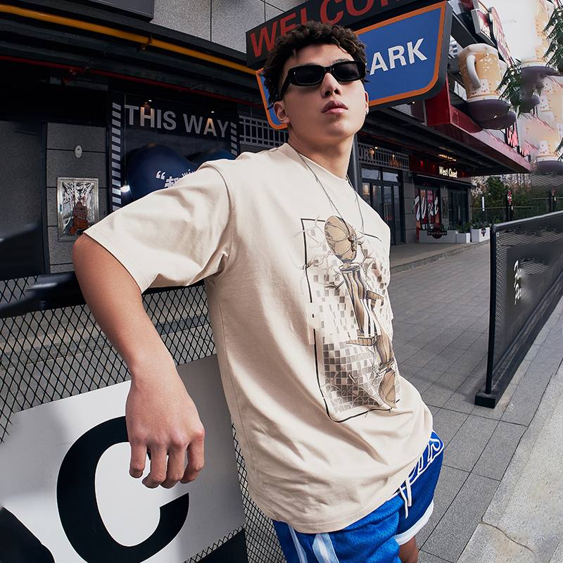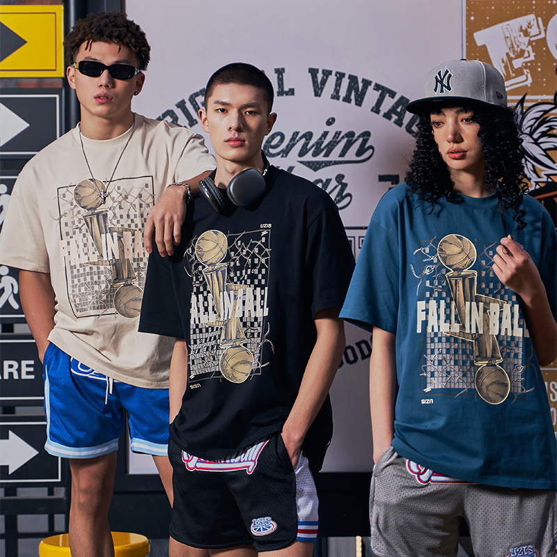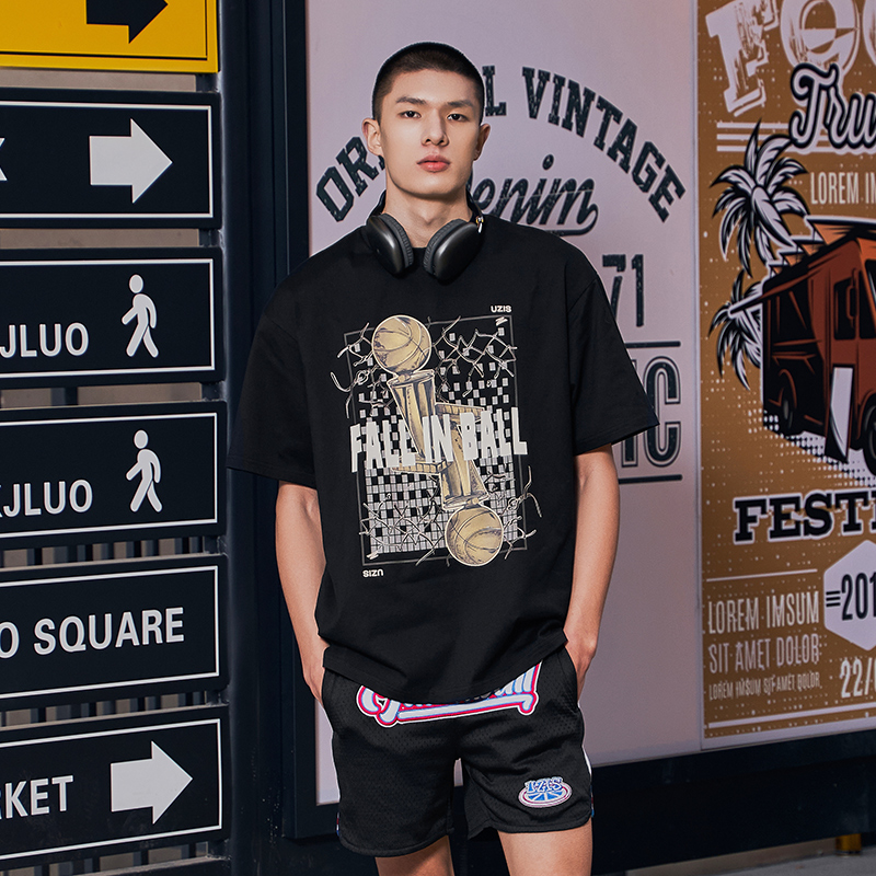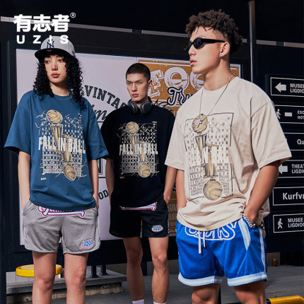 有志者UZIS 运动短袖男夏季户外热身训练宽松复古印花棉T恤[蝉联