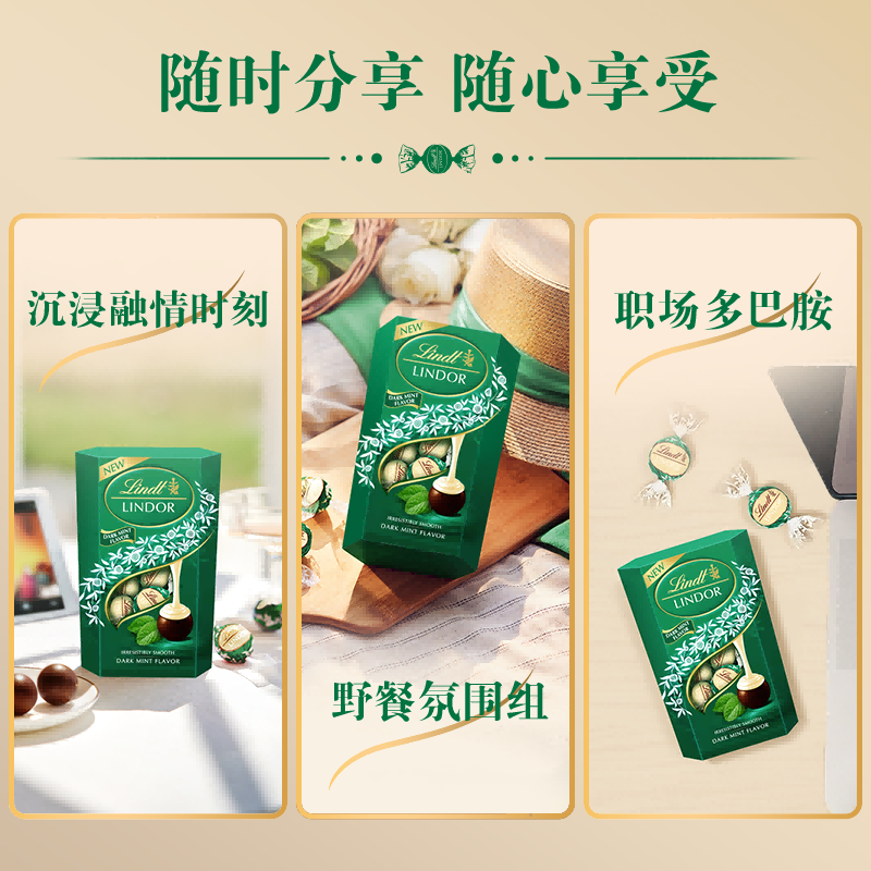 【新口味上市】瑞士莲软心薄荷风味黑巧克力休闲零食纯可可脂