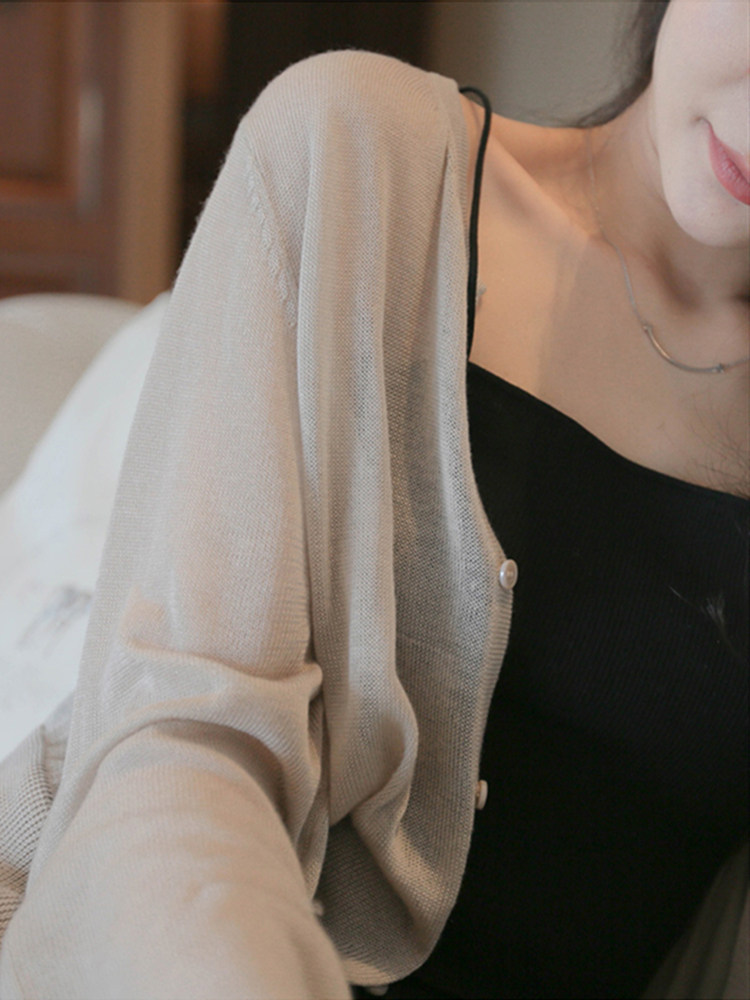 冰丝针织开衫女夏季高级感V领薄款长袖配吊带裙外搭防晒空调罩衫