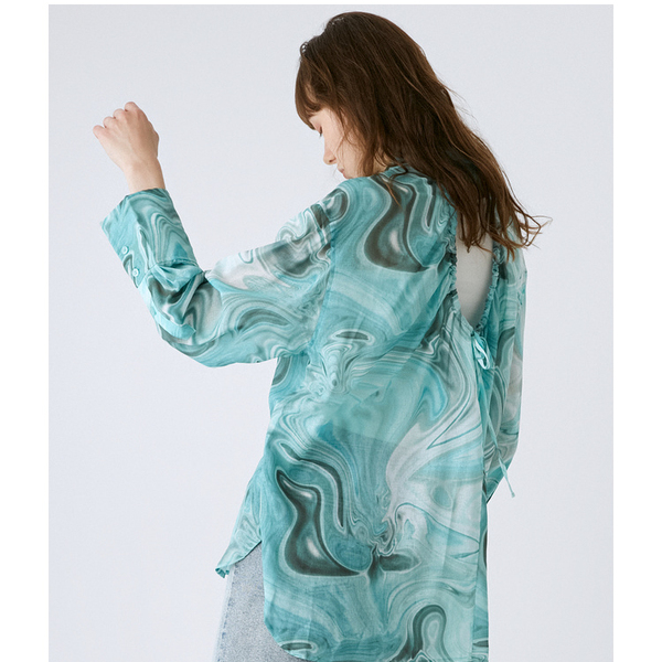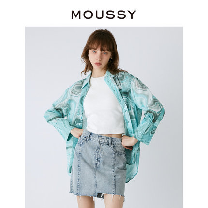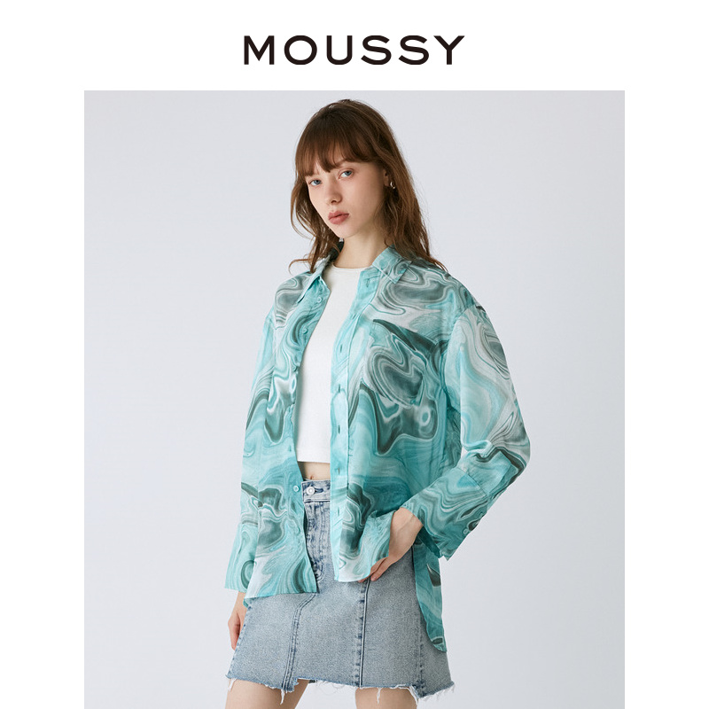 MOUSSY 通勤休闲大理石花纹OVERSIZE长袖翻领衬衫女028GA430-5560