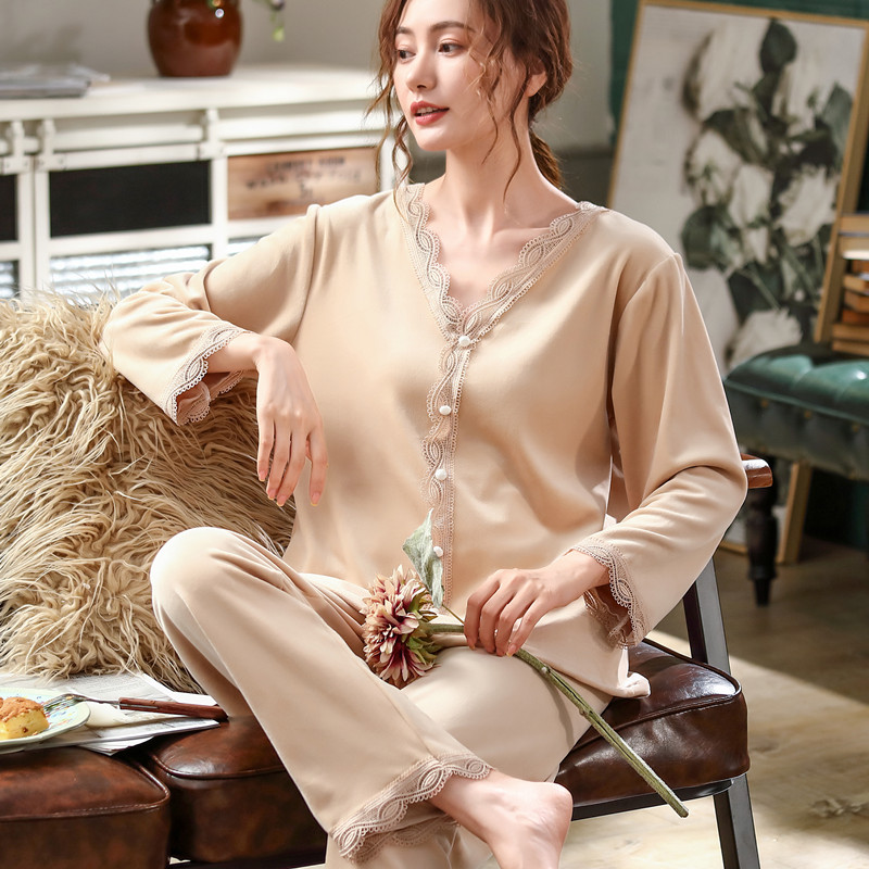 睡衣女秋冬季加厚柔软海岛绒网红爆款洋气简约双面绒加绒保暖套装