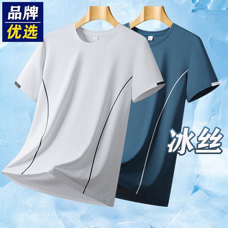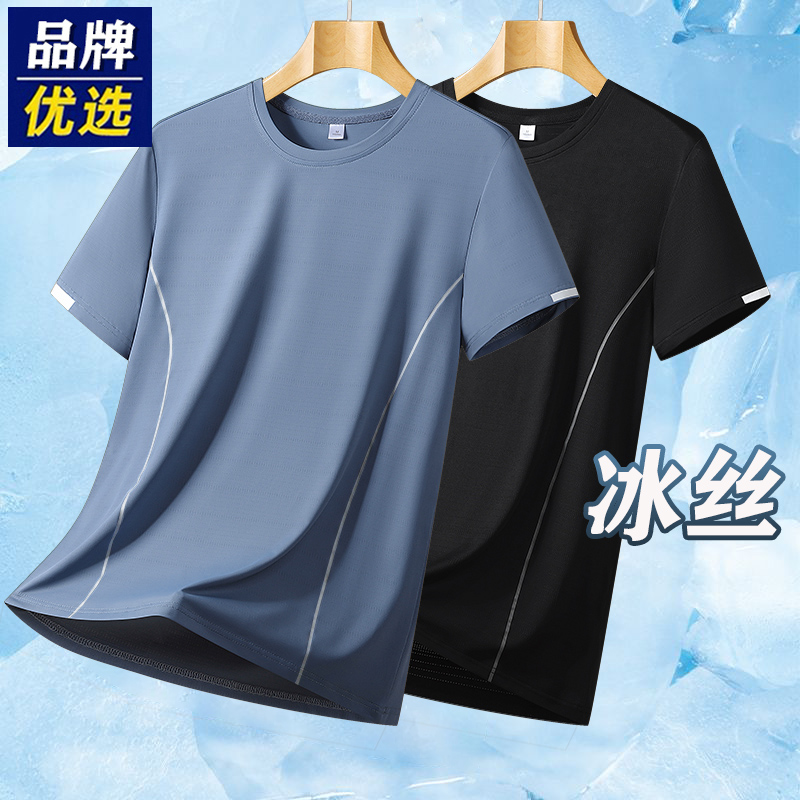 品牌优选短袖男士夏季跑步速干钓鱼防晒宽松透气冰丝帅气上衣t恤