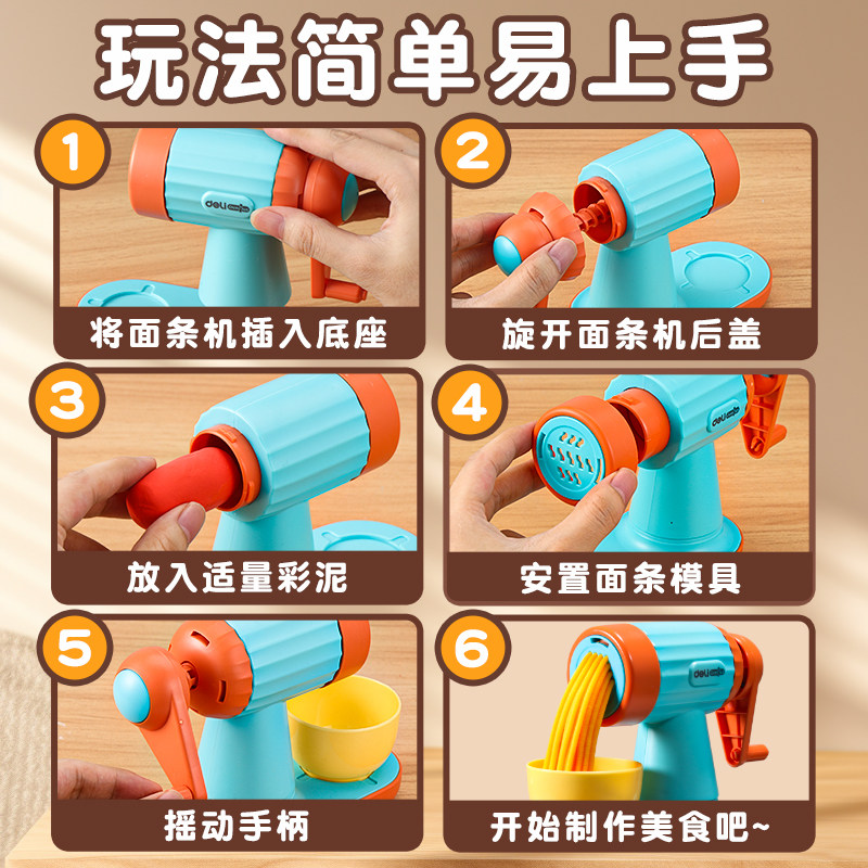得力儿童面条机新年玩具彩泥套装无毒橡皮泥食品级粘土幼儿黏土