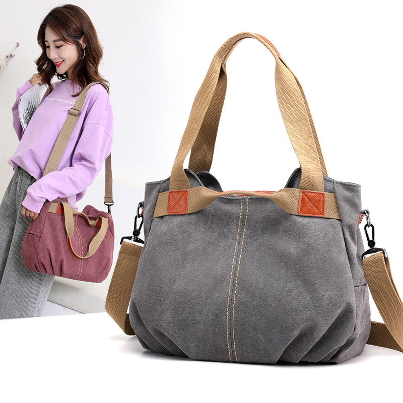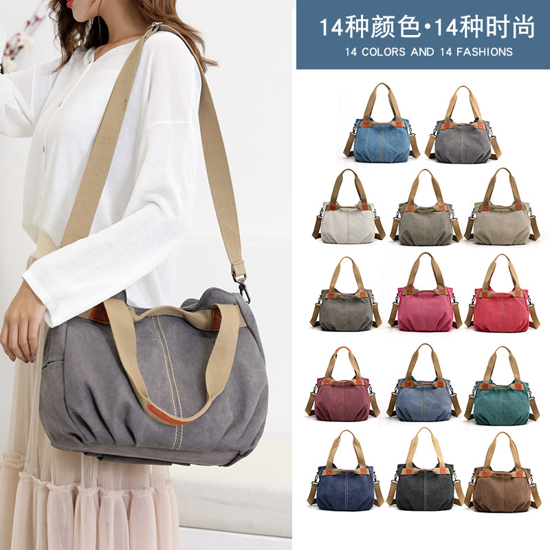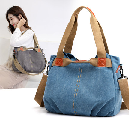 新款休闲帆布包女士单肩包结实多隔层斜挎包时尚手提大包包通勤包