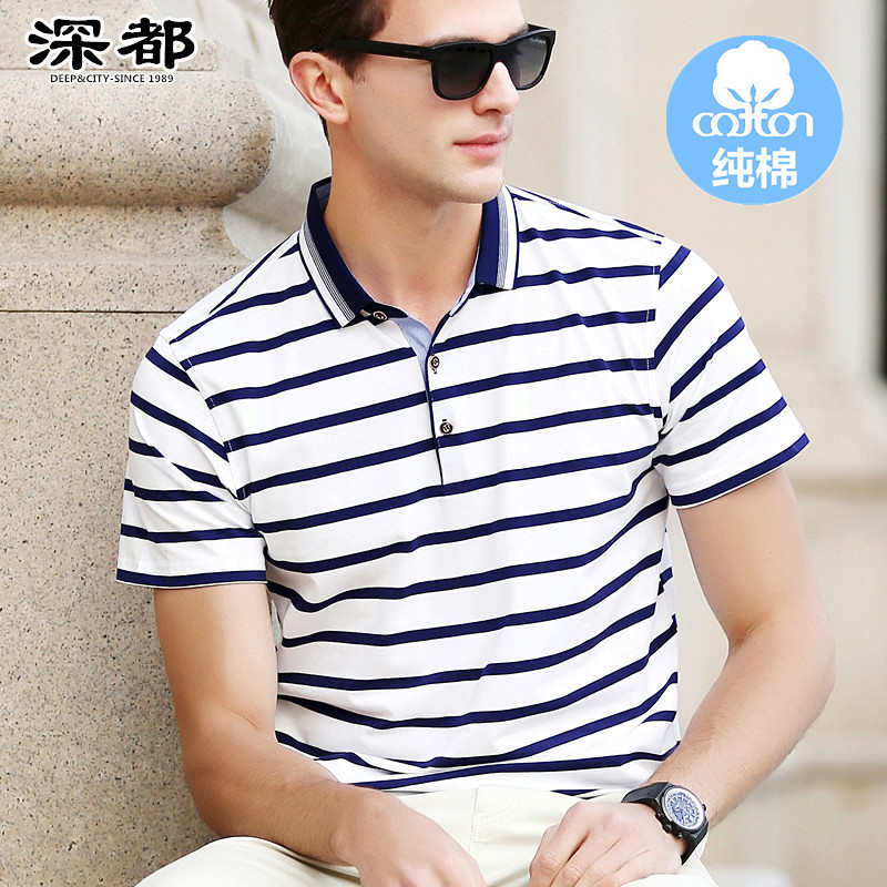 男士纯棉短袖条纹t恤衫2023夏季新款中青年休闲上衣翻领POLO衫T恤