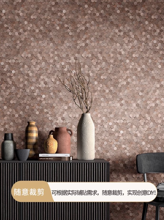 3D立体六角金属墙贴自粘马赛克瓷砖客厅厨房卫生间背景墙小颗粒贴