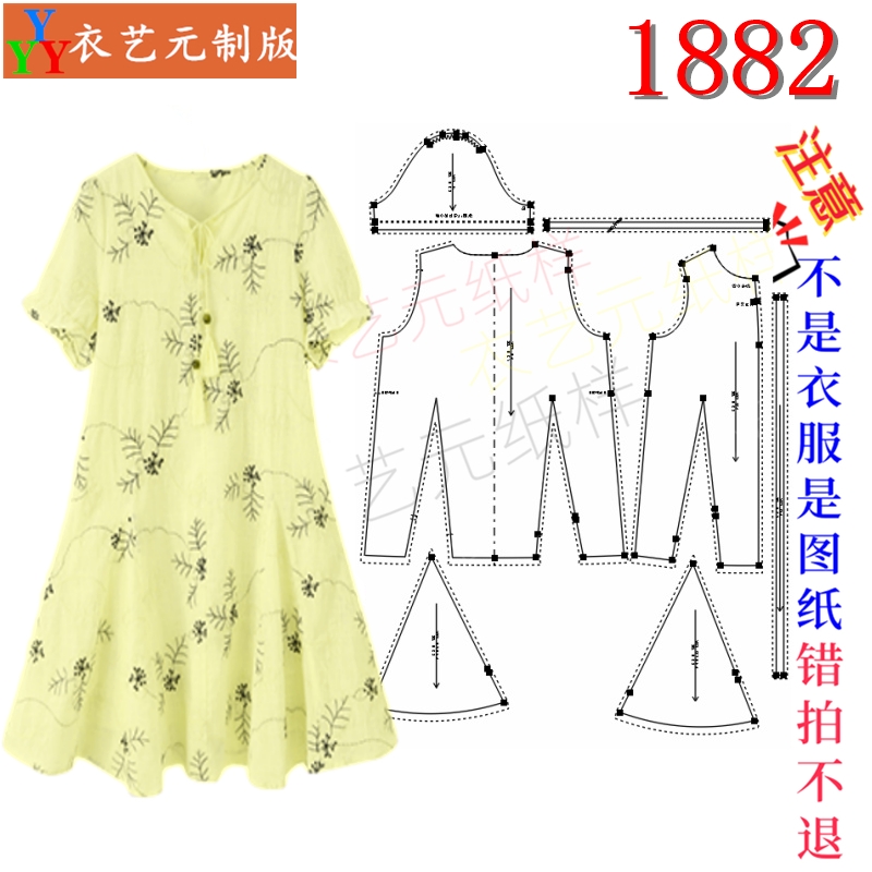 1882衣服装裁剪图纸样板新款连衣裙宽松收腰显瘦中长款裙子女装