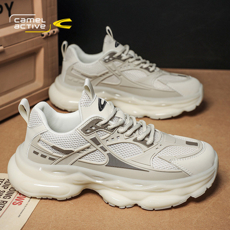 德国骆驼动感男鞋2026新款春季软底网面黑色老爹鞋厚底增高运动鞋