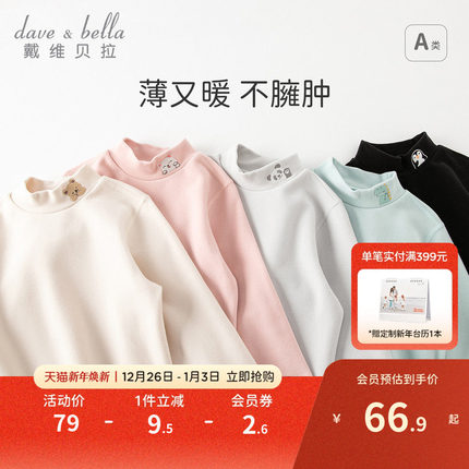 戴维贝拉儿童长袖T恤冬装新款打底衫女童男童上衣宝宝发热半高领