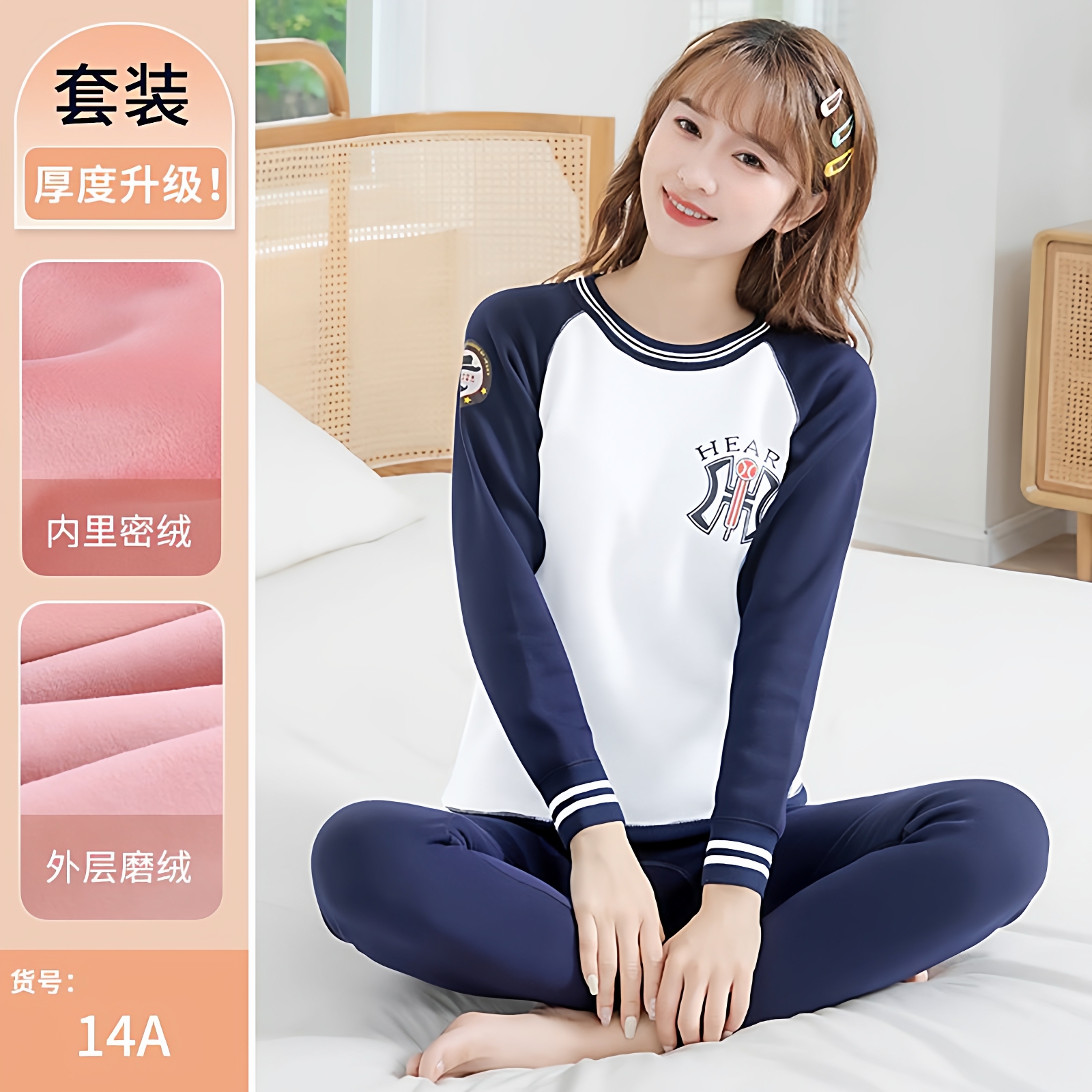 少女保暖内衣套装加绒加厚初高中学生大童打底衫女士保暖内衣套装