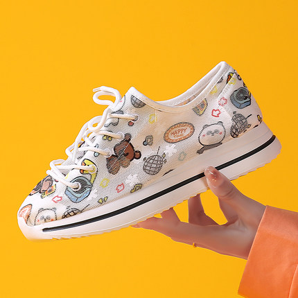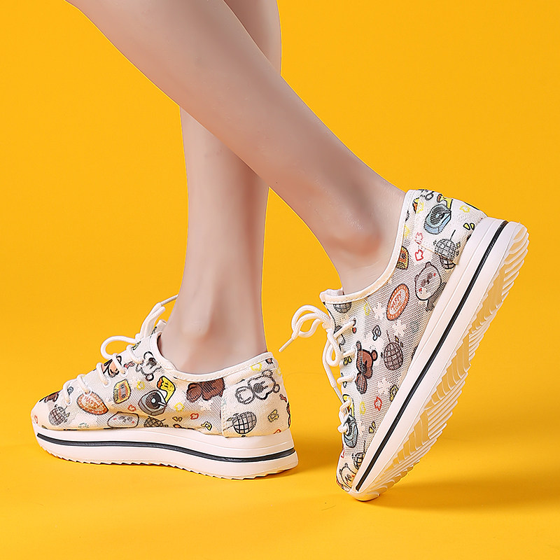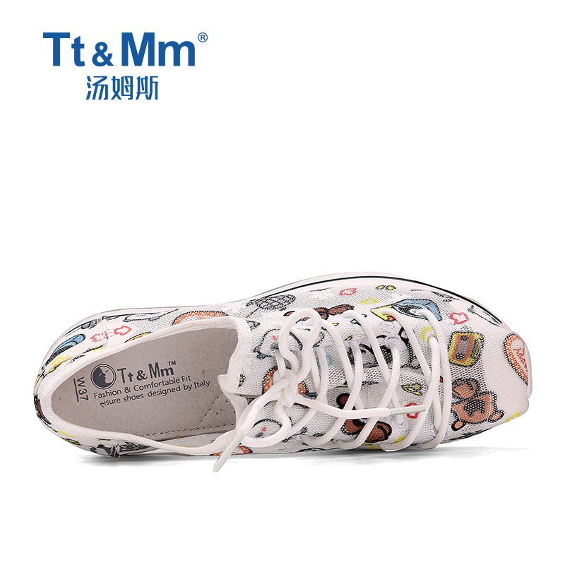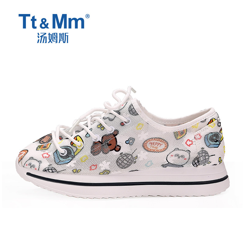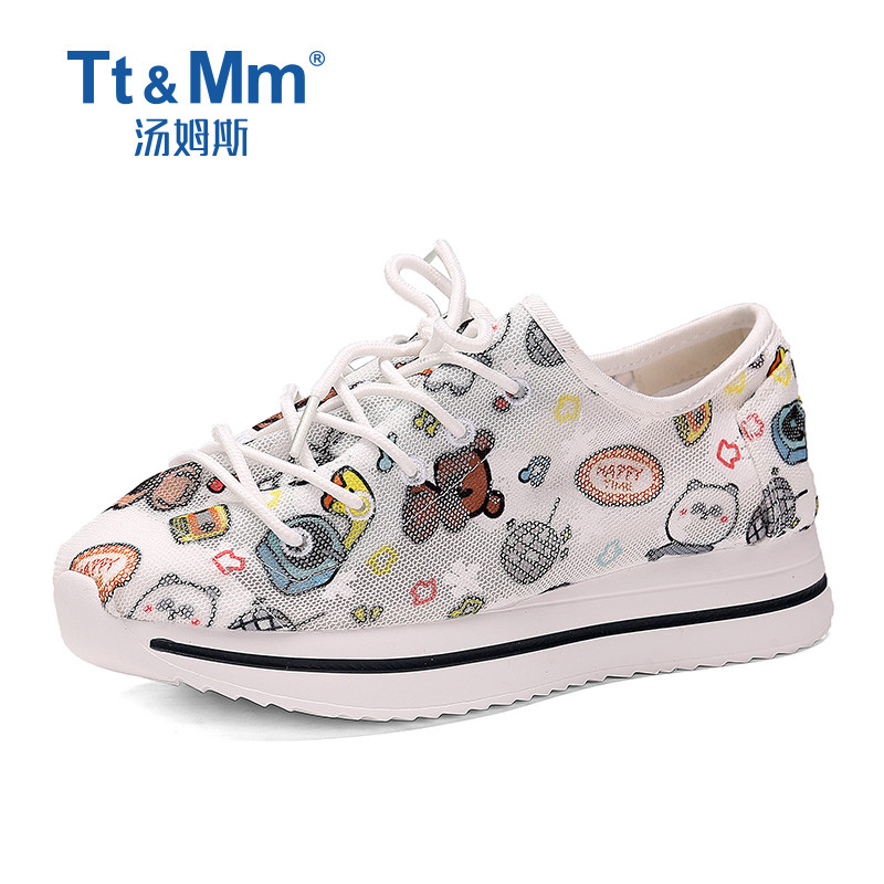 Tt&Mm/汤姆斯显瘦透气网面帆布鞋厚底松糕夏平跟休闲网面街头女鞋
