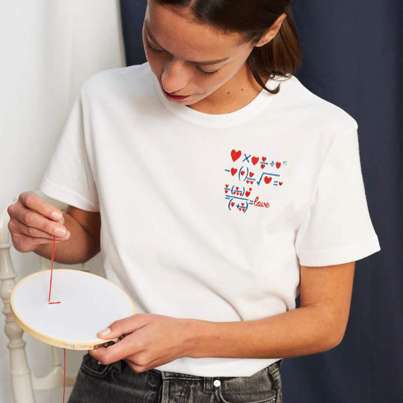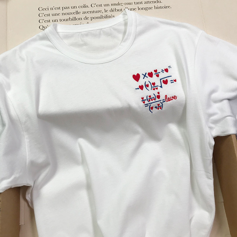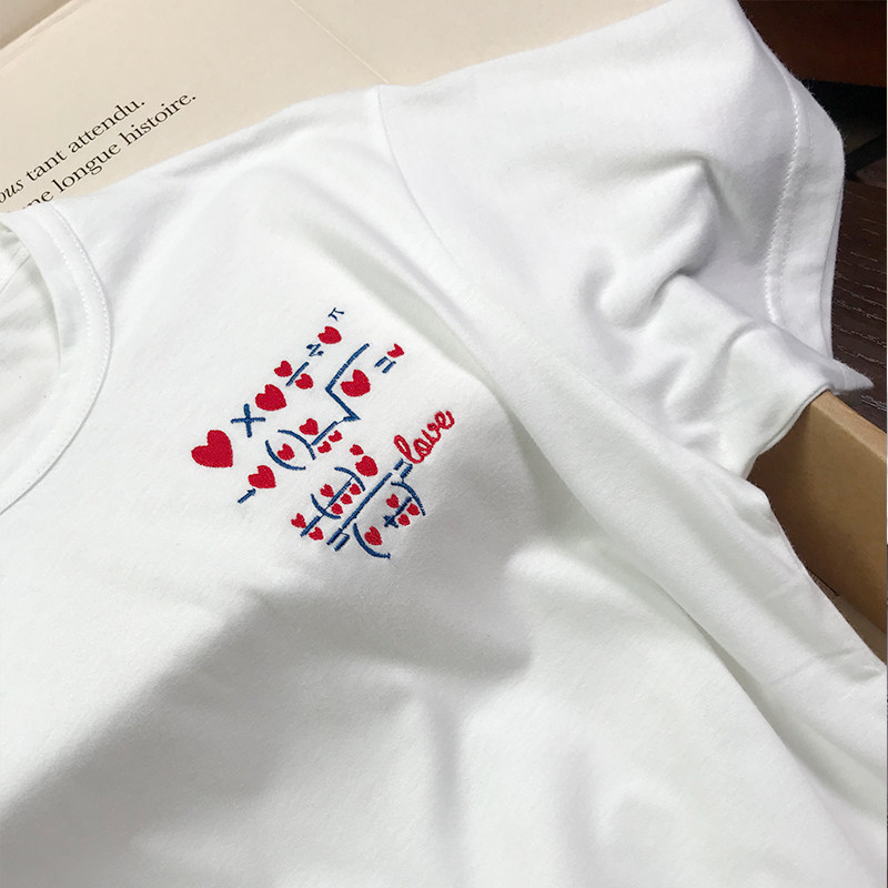 现货~2021年夏天法式小众纯棉复古风可爱心方程式刺绣宽松短袖T恤