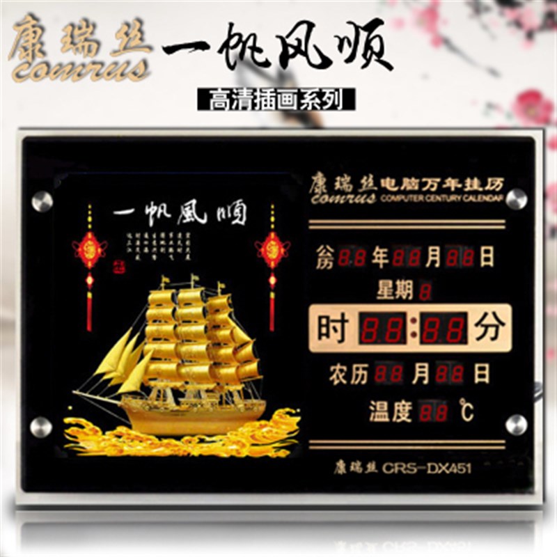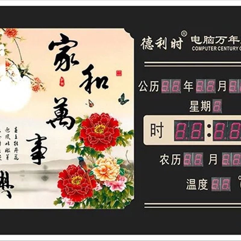 LED数码万年历电子日历客厅壁挂钟山水画风景日历挂钟大字体温度