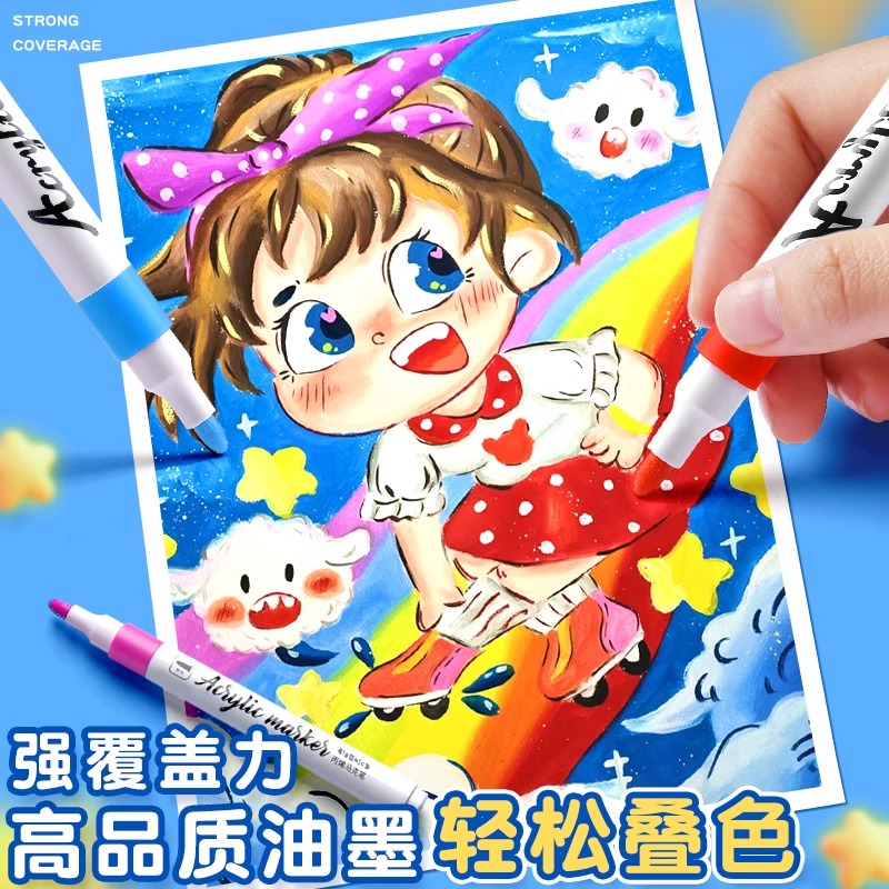 丙烯马克笔儿童水彩笔笔芯小学生美术画画专用不透色可叠色幼儿园双头无毒可水洗36/48/80/60画笔软头防水diy
