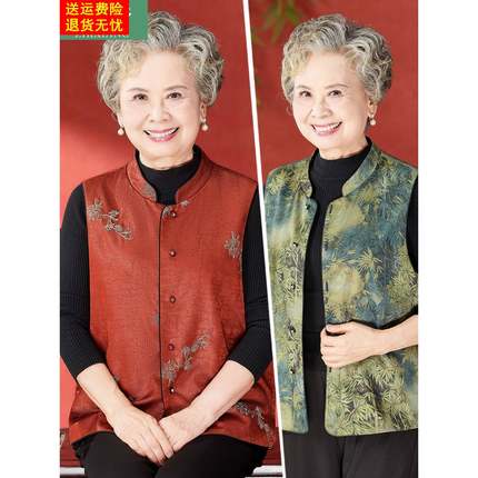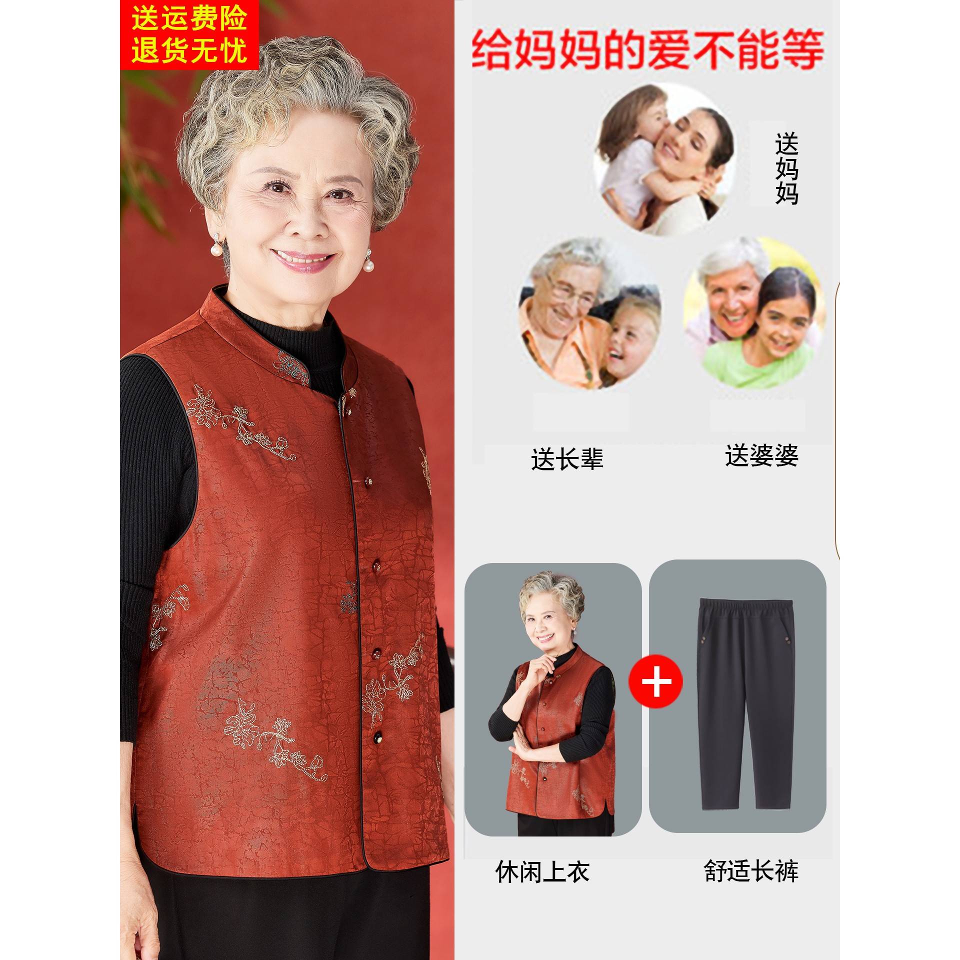 老年人马甲外套女妈妈秋装坎肩背心老人衣服太太马夹奶奶春秋开衫