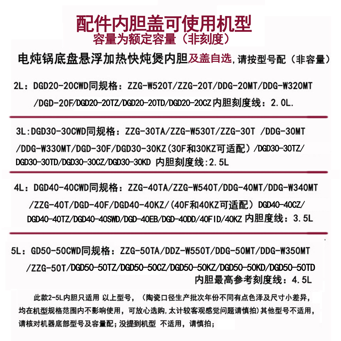 适用天际煮粥锅3L 4L 5L升ZZG-30TA 40TA 50TA快电炖锅陶瓷内胆配