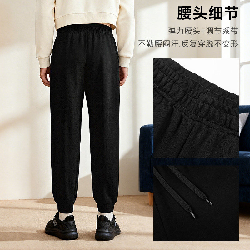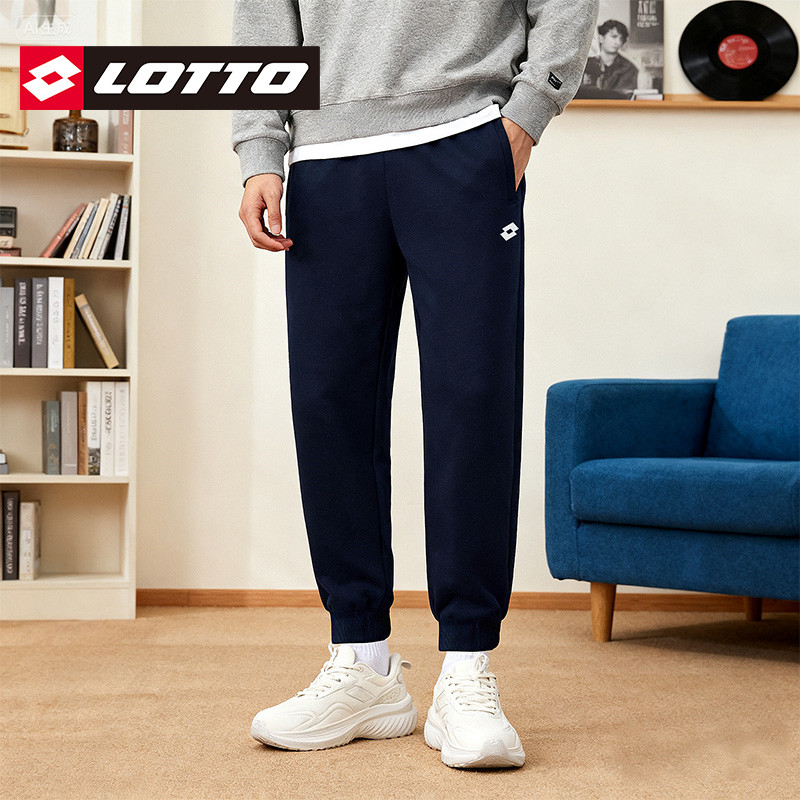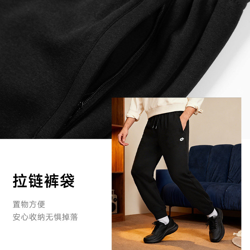 LOTTO乐途男士黑色束脚运动裤2025秋冬新款潮流休闲卫裤针织长裤
