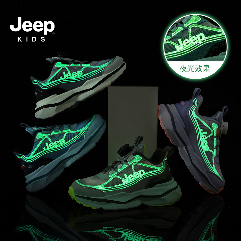 Jeep男女童鞋旋转扣耐磨跑步鞋透气网面休闲鞋夜光跑鞋儿童篮球鞋