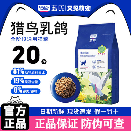 20斤蓝氏猎鸟乳鸽猫粮赛级繁育10kg全价猫粮大袋大包猫粮新鲜优质